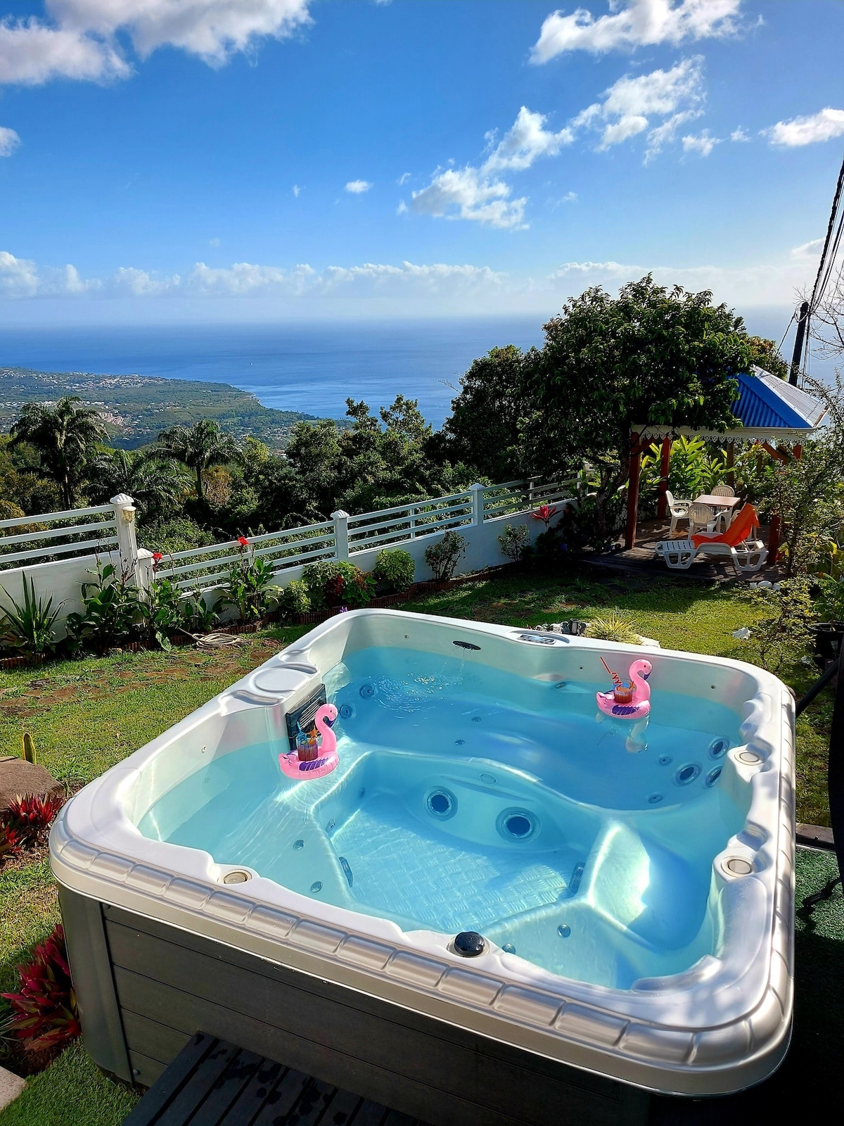 Route du Rhum es un verdadero nido íntimo en un jardín tropical con vistas panorámicas del Grand Cul de Sac Marin. ¡Nido acogedor e idílico para una estancia romántica! Lugar paradisíaco perfectamente situado para irradiar en los puntos imprescindibles de nuestra maravillosa isla. El «spa» privado, enclavado en medio de las flores y la vegetación local, con vistas al mar, es ideal para la intimidad, la relajación y la tranquilidad... ¡para unas vacaciones inolvidables!