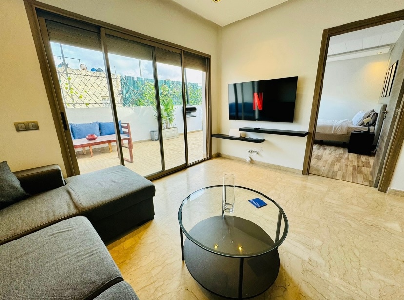 🔥 Dúplex de lujo en Casablanca. ¡Aprovecha esta promoción exclusiva!Disfrute de un alojamiento elegante y céntrico. Descubra un dúplex raro de estilo moderno, ubicado en un edificio seguro en el corazón de Casablanca. Un espacio elegante, bañado en luz, con una decoración pensada hasta el más mínimo detalle. Ideal para una estancia acogedora con Netflix, wifi ultrarrápido, aparcamiento privado y un perfume ambiental que le da la bienvenida desde la entrada.