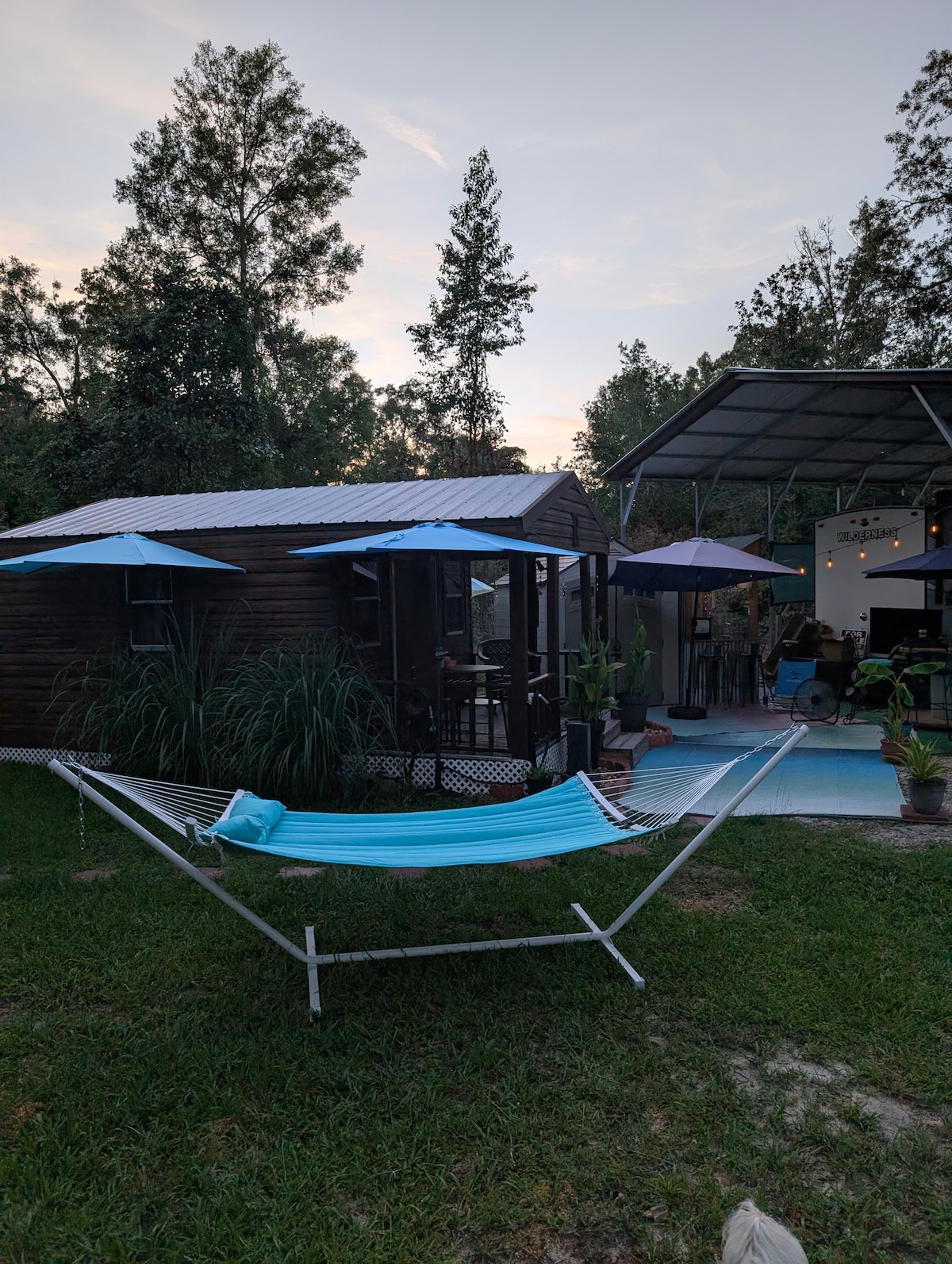 Disfruta de la sencillez de esta tranquila cabaña... Con una ubicación céntrica cerca de Itchetucknee Springs, Ginny Springs, Poe Springs, Blue Springs, Santa Fe River y Suwannee River. Esta zona es popular para bucear, hacer esnórquel, pasear en bote, pescar, hacer kayak, tubing y senderismo o simplemente relajarse con la naturaleza. Cocina completa, sala de estar y dormitorio separado con una cómoda cama tamaño queen y vestidor. Un baño grande con ducha a ras de suelo. Wifi en todas partes. Televisor inteligente de 42 pulgadas en la sala de estar, televisor inteligente de 32 pulgadas en el dormitorio.