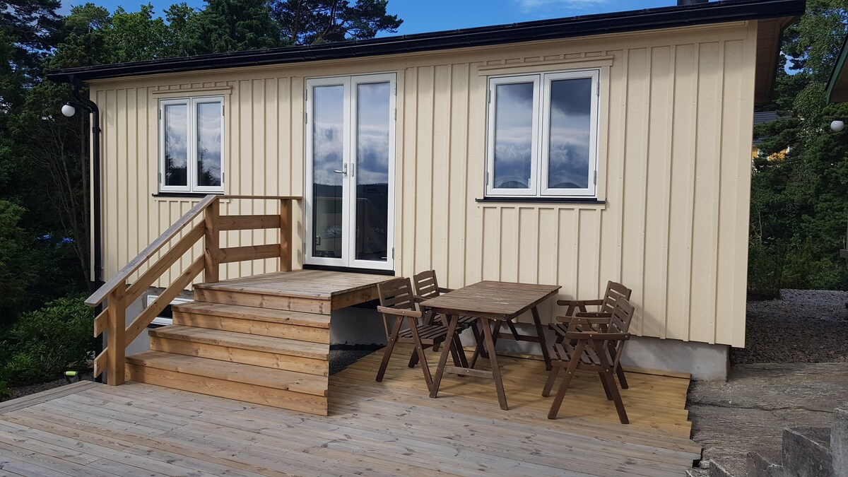 Disfruta de la puesta de sol en el hermoso balcón o, por qué no, camina hasta el mar y date un baño nocturno. Acogedora cabaña recientemente renovada de unos 50 metros cuadrados con un diseño de planta abierta y comodidades como lavavajillas, lavadora, secadora y wifi. El coche se aparca fuera de la casa. Cerca del centro de Stenungsund, donde hay tiendas y otros servicios. En la zona hay muchos destinos agradables.