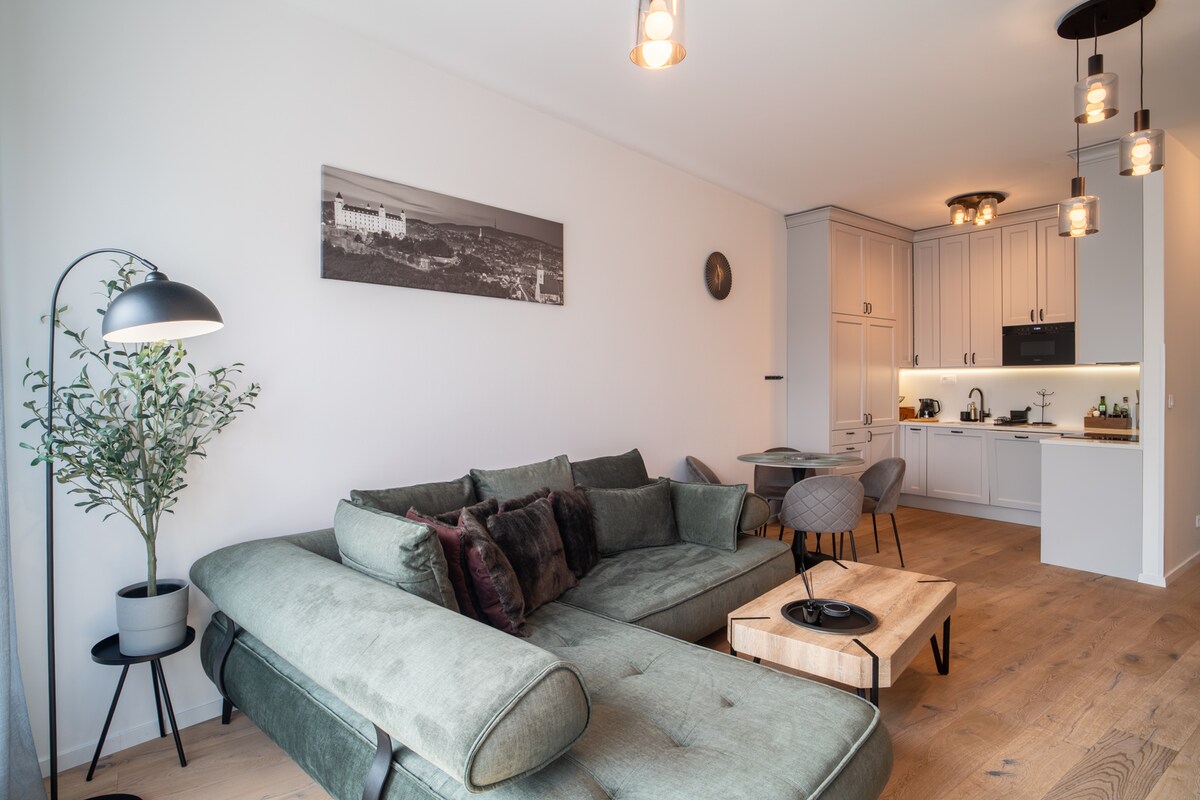 Apartamento de lujo y moderno en el proyecto SKY PARK (proyecto de la arquitecta de fama mundial Zaha Hadid) en el nuevo centro de la ciudad con una hermosa vista al castillo y a la ciudad. El apartamento se encuentra cerca del nuevo centro comercial Niva, a 5 minutos del río Danubio (centro comercial Eurovea) con muchos cafés y restaurantes, y el centro de la ciudad (casco antiguo) está a 5-10 minutos a pie. APARCAMIENTO GRATUITO EN EL EDIFICIO INCLUIDO