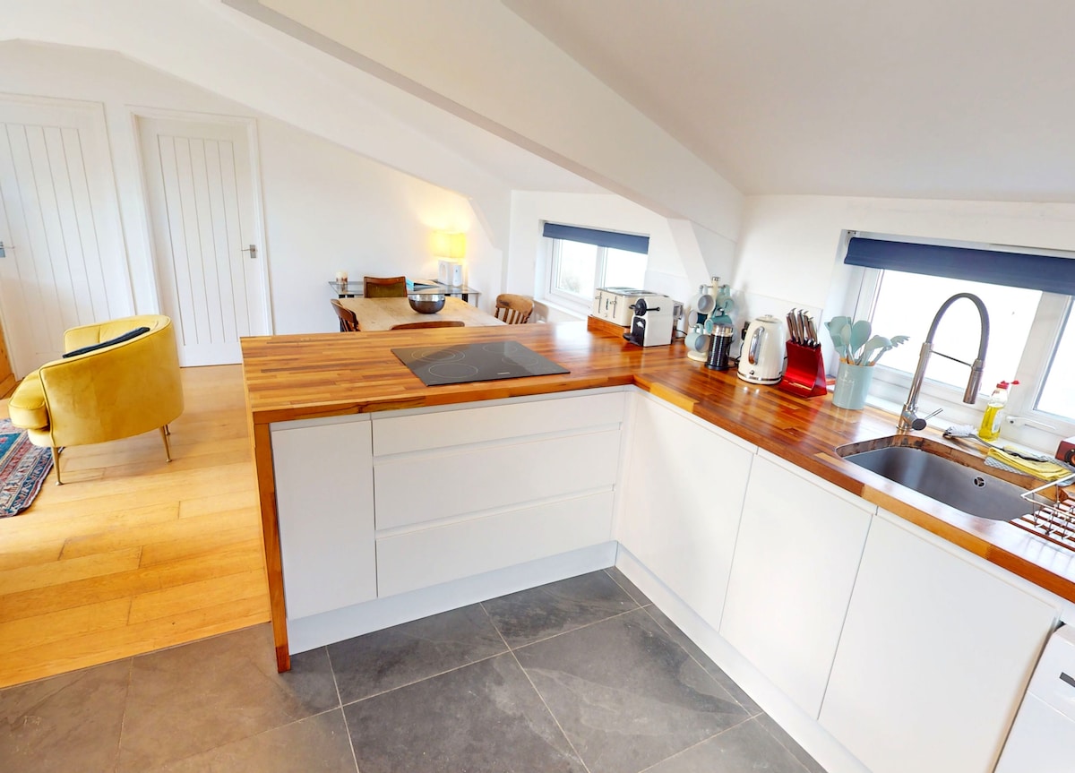 Desconecta de la rutina en este alojamiento único y relajante con las vistas más impresionantes que North Devon tiene para ofrecer. Relájate en esta elegante joya escondida. A 5 minutos a pie de los bares y restaurantes frente a la playa en una de las posiciones elevadas más buscadas que Westward ho! tiene para ofrecer. Aparcamiento asignado en el exterior y a 5 minutos en coche de la histórica ciudad portuaria de Bideford. Disfruta de las vistas del estuario del río Torridge o de los paseos costeros de gran belleza desde la puerta de entrada hasta los acantilados de Abbotsham y más allá.