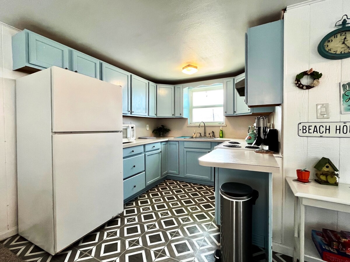 ¡Recién renovado, a pocos pasos de la playa! 2 dormitorios, 2 baños Capacidad para 8 personas COMO MÁXIMO Habitación 1: cama king Dormitorio 2: cama de día queen y cama nido completo. Sala de estar: colchón de aire completo disponible solo para niños. Lavadora y secadora completa Cocina totalmente amueblada WiFi gratis. Televisores inteligentes. Ducha exterior. Vistas al agua delantera y trasera. Muebles de patio. Cerca de restaurantes, licorerías y tiendas de la esquina. Juguetes de playa disponibles. Parrilla. Pack&Play disponible. Carro para uso en la playa. Juguetes/libros para niños. No se permiten mascotas.