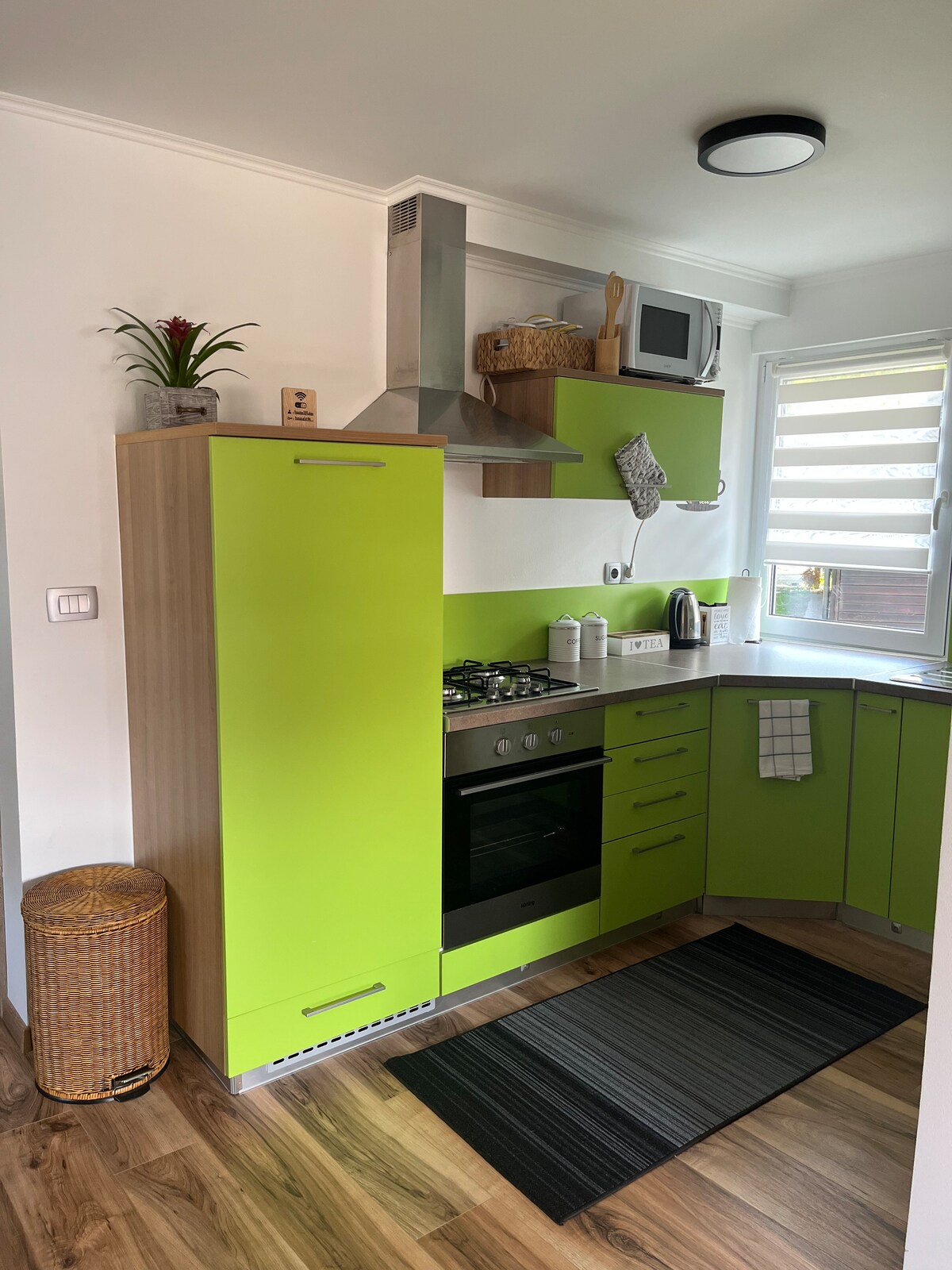 ¡Bienvenido a su tranquilo refugio en el corazón de la campiña virgen de Eslovenia! Entra en un apartamento luminoso y espacioso diseñado pensando en la elegancia y la comodidad. La decoración bien pensada y el ambiente relajante hacen de este el lugar perfecto para parejas, familias o grupos que buscan un descanso relajante. Terraza privada con vistas panorámicas, ideal para el café de la mañana o el vino de la noche Cocina totalmente equipada con aire acondicionado, aparcamiento gratuito en el sitio, zona de fumadores al aire libre en la terraza.