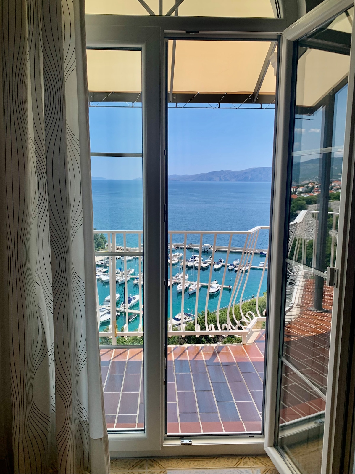 Nuestras vistas al mar sobre el puerto deportivo te invitan a pasar tus días y noches en el balcón, con vistas a las aguas cristalinas de la piscina infinita y el mar Adriático. Tanto si se trata de una copa de vino o una Coca-Cola, un juego de Uno o la última novela, sentirás inmediatamente que estás de vacaciones. Y si te apetece ir a la playa, la Riviera de Novi Vinodolski está a solo diez minutos a pie. Por cierto: Novi Vinodolski significa «Nuevo Valle del Vino», solo tienes que preguntarle a nuestro galardonado enólogo