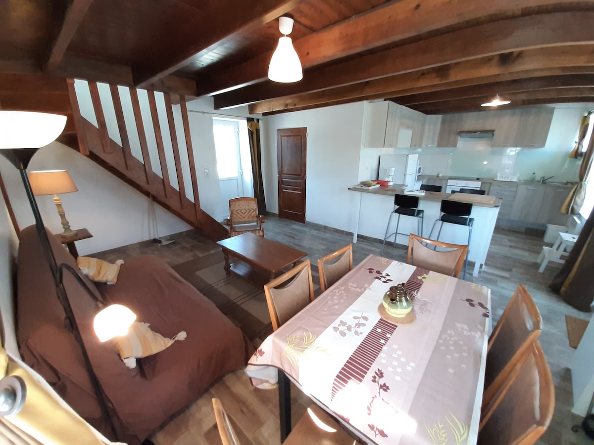 Estudio de 55 m2 reformado para 2 personas. Situado a 4 km del Monte Saint-Michel y al pie del molino de Moidrey con vistas al monte y al parque de animales, con cabras, ovejas, un caballo normando, gallinas... Equipado completamente Cocina, sala de estar Cuarto de baño Patio con muebles de jardín y vistas al molino. Bicicletas disponibles para ir gratis al Monte San Miguel sin pasar por la carretera a lo largo del río Couesnon a unos 10 minutos de los autobuses o a 20 minutos del Monte