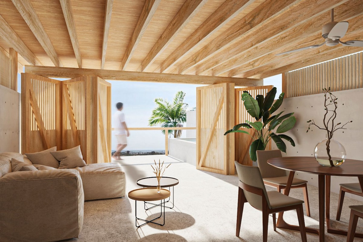 Depa amplio y luminoso en planta alta con 2 camas queen súper cómodas, A/C en la recámara y ventiladores en sala y cocina. Cuenta con cocina equipada, salita acogedora y balcón con vista a palmeras. Estás a solo 2 min de la playa y a 1 min de cafés, tiendas y restaurantes. Disfruta el patio compartido con hamacas, árboles frutales, asador y área de pesas artesanales. Ideal para relajarte, surfear o trabajar remoto con buena vibra. 🌴