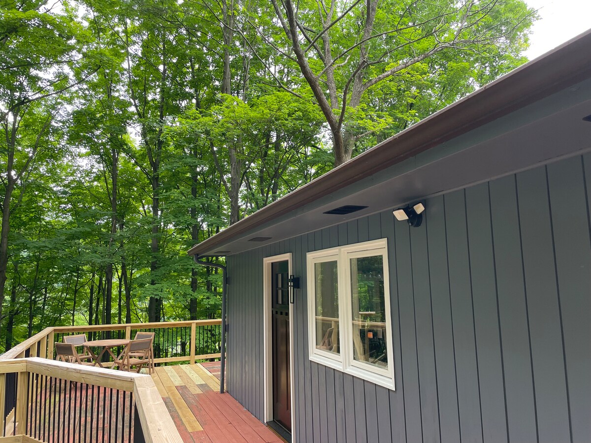Relájate en este romántico alojamiento ubicado en las hermosas colinas de Bristol, a pocos minutos de Bristol Ski Resort y de los lagos Canandaigua y Honeoye. Esta casa de campo única de 1 dormitorio y 1 baño es una de nuestras dos casas en la propiedad a lo largo del tranquilo Mill Creek. Contempla la belleza natural desde el gran patio y la bañera de hidromasaje. En el interior, disfruta de la calidez de la chimenea de gas, wifi de cortesía y smartTV. La cocina completa y el baño están bien equipados con servicios para que disfrutes de una estancia cómoda.