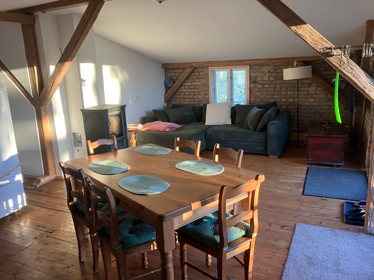 El impuesto turístico está incluido en la tarifa de reservación. Si viajas por negocios, ponte en contacto conmigo y te enviaré una oferta de anfitrión, ya que no tienes que pagar una tasa turística. Te alojarás en un apartamento cuidadosamente renovado con una terraza en la azotea en el piso superior de una antigua casa de asentamiento. (escaleras originales arriba) Puedes disfrutar de la comodidad y el gran clima en un apartamento limpio con arcilla y paja. ¿Estás de humor para esta experiencia especial? Agradecemos su reserva.