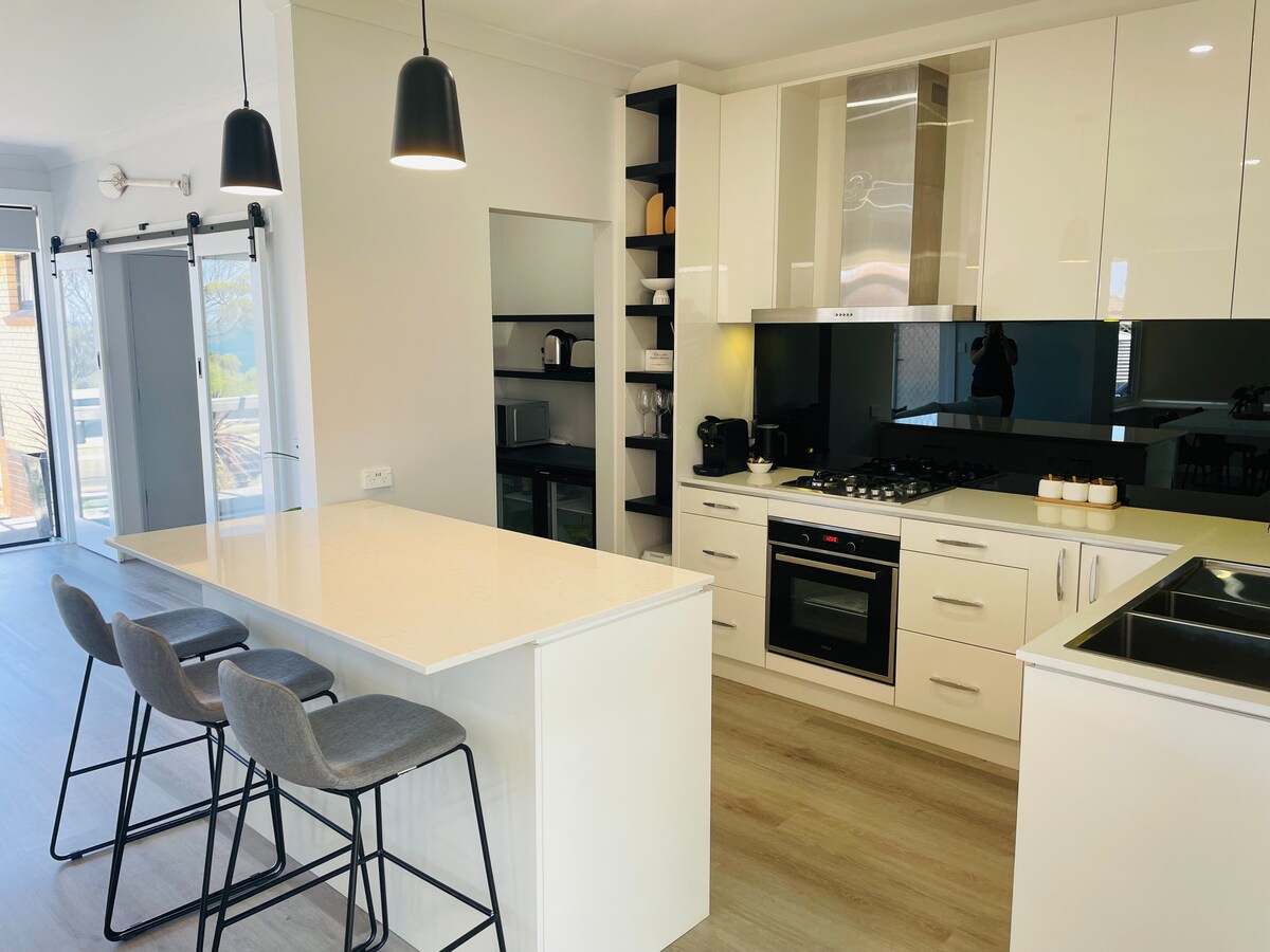 Our fully self-contained apartment is set in a peaceful neighbourhood, a short stroll down to the jetty, new boat ramp and famous long white beach. The apartment is on the ground floor of our newly built two storey home. You have private access with no stairs or steps, parking at the front door, a well-lit driveway and entrance, off-street parking for boats, free wifi and reverse cycle air conditioning. The private outdoor area and lounge overlooks our spacious garden with your own BBQ.