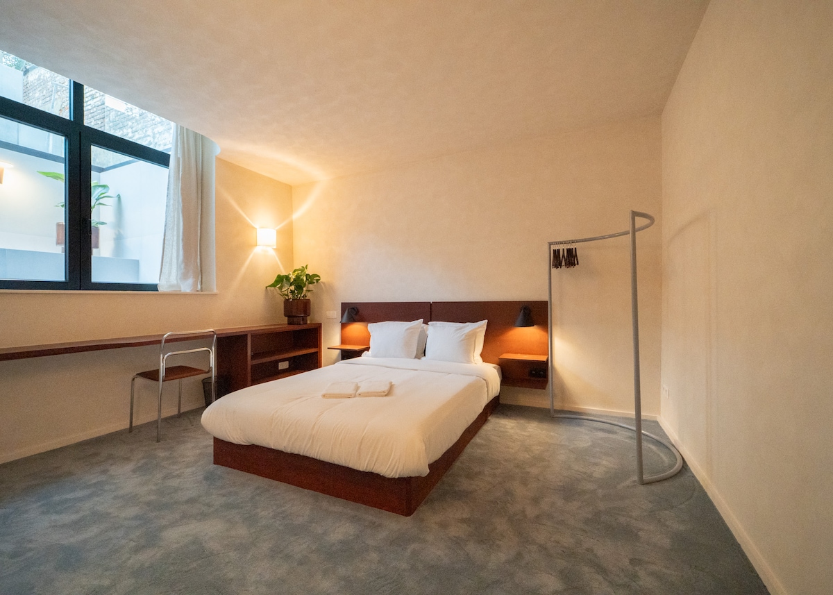 Hostal Dormitorio privado con 2 camas individuales. Baño común (con 2 duchas), 2 aseos y una cocina común totalmente equipada para compartir con todos mis posibles huéspedes. Toallas, champú, secador de pelo y acceso a wifi. Situado a 2 minutos a pie de la Estación Central y la Grand-Place, también cerca de un aparcamiento público subterráneo (la tarifa es de 28 € por 24 horas). La habitación es accesible solo por escaleras en el segundo piso. Ten en cuenta que el desayuno no está incluido. ¡Espero verte pronto en mi encantadora ciudad! :-)