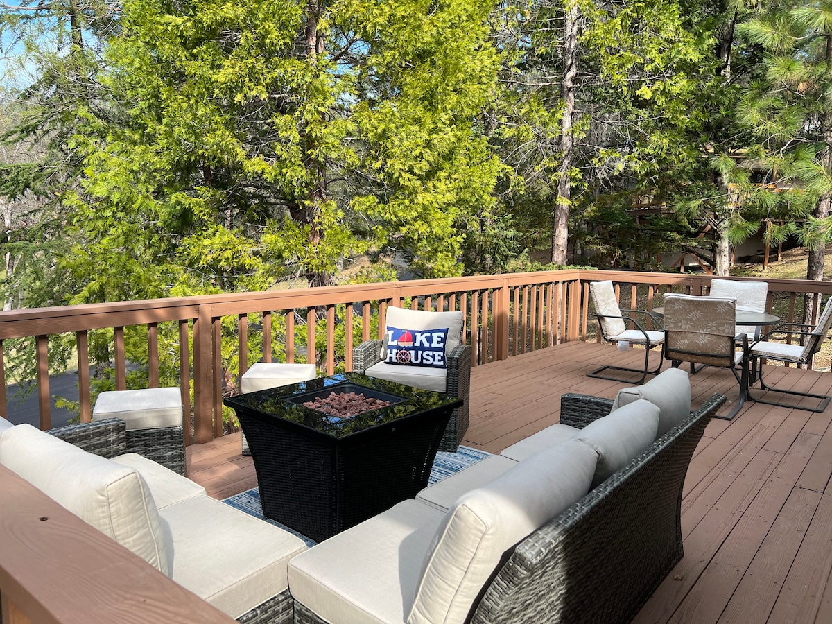 Stunning private mountain home in a lake community with all the modern amenities. This 2 story home boasts 2,200 sq. ft., 3 bdrm, 3 bath, 2 living rooms, and a large deck. The home features central heat & air, open kitchen/living concept with large island to gather around, along with wifi and smart TVs. This home is beautifully furnished and decorated with a vintage touch. Just a few minutes from the lake or golf course, and about 45 mins to the Yosemite gate.