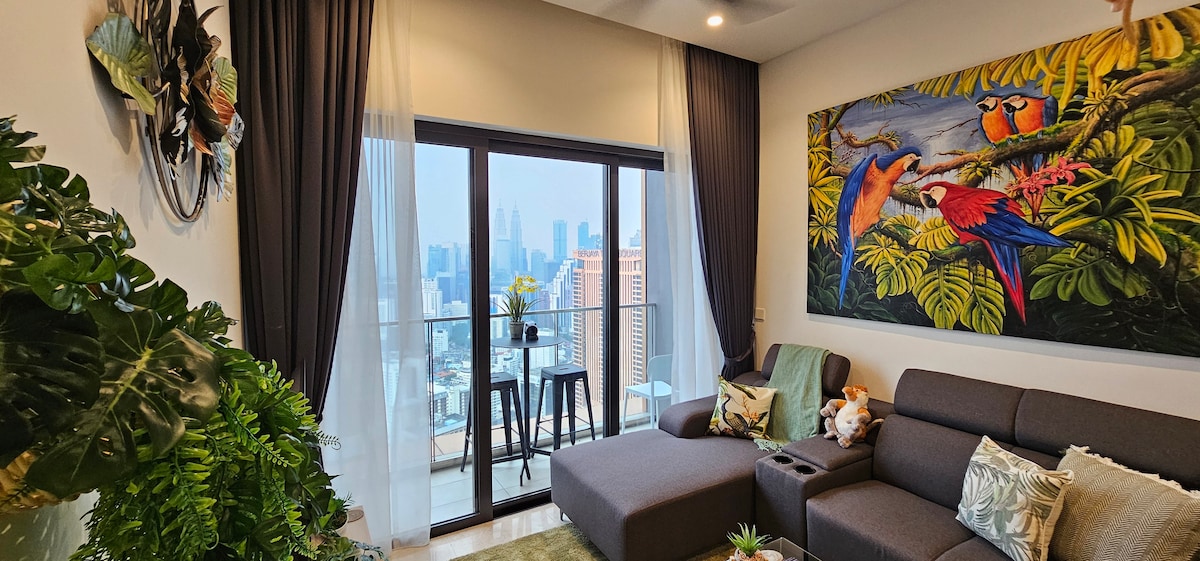 ¿Por qué alojarse en The Tropicana Suite en Lucentia Residence? - las mejores vistas de Kuala Lumpur - bellamente decorado con un espíritu divertido. - Ubicación céntrica - Casi en transporte público. - WiFi rápido. -2 televisores con Netflix, Apple TV, Prime Video -2 piscinas maravillosas - Apto para familias con cuna y silla alta. -gimnasio, mesa de billar,barbacoas, piano. - Estacionamiento de garaje. - Recomendado para 3 personas, máximo 5 personas. - El centro comercial LalaPort y la calle de entretenimiento WOW, la tienda de comestibles, la farmacia y muchos restaurantes están adjuntos. - Teatro cinematográfico GSC
