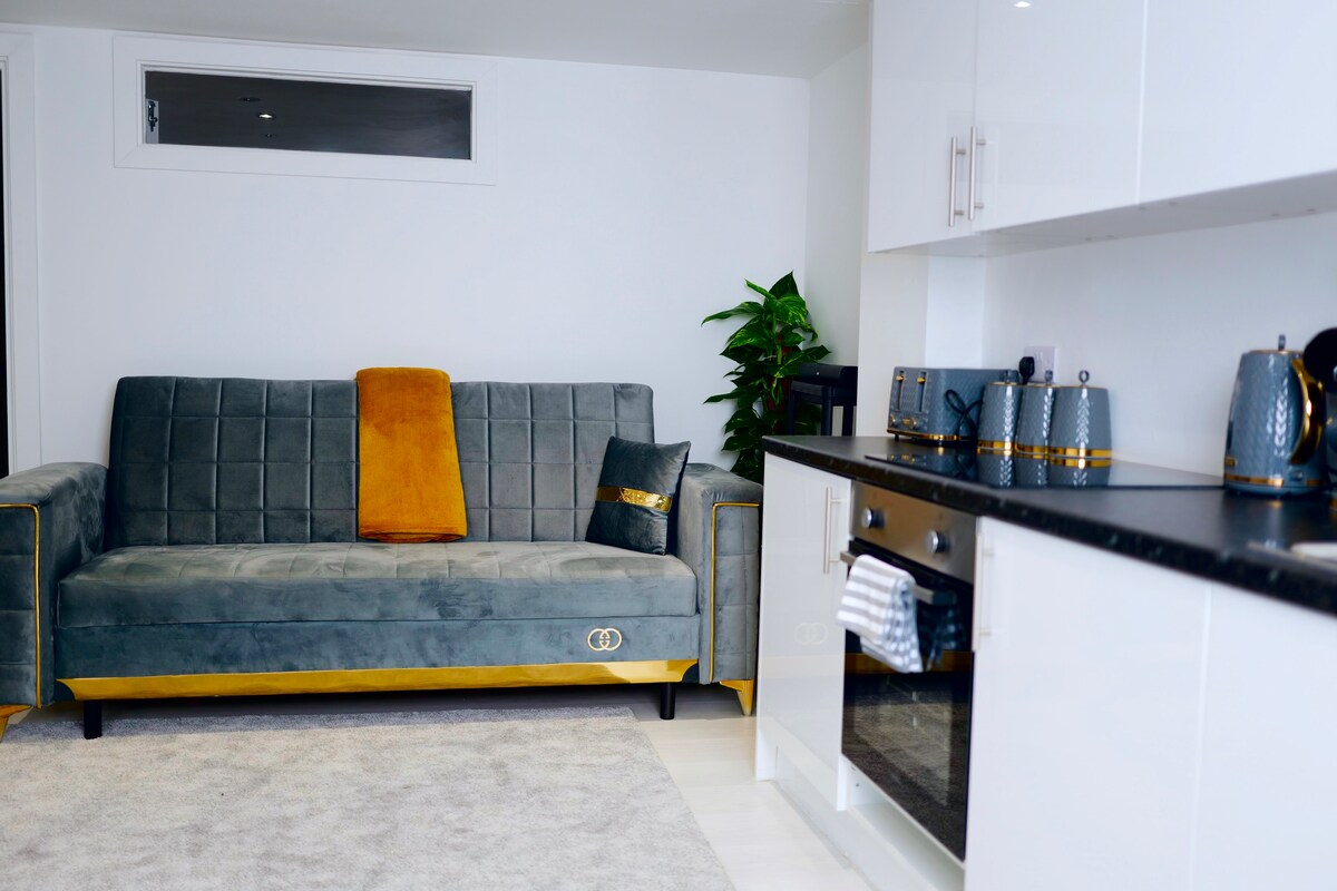 Bienvenido a nuestro nuevo y elegante apartamento en la planta superior de Waltham Cross. Encontrarás una amplia y luminosa cocina abierta, un dormitorio tranquilo y cómodo y un baño separado. Estamos situados a menos de 10 minutos a pie de la estación de tren Waltham Cross, que ofrece fácil acceso al centro de Londres y al aeropuerto de Stansted (a través de Tottenham Hale). Perfecto para parejas o solteros, buscando la comodidad de un hogar mientras estás fuera por negocios, visitando a amigos/ familiares o explorando la zona local.