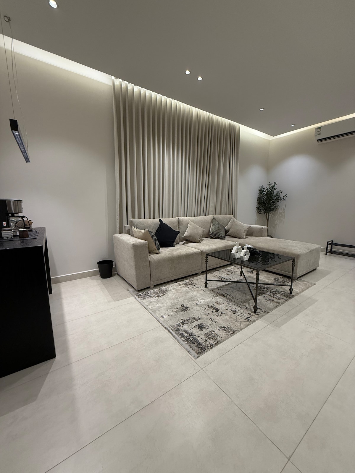 Un apartamento lujoso, privado y seguro con entrada inteligente y tiene un dormitorio principal y las necesidades del dormitorio para una noche agradable. Un salón separado para cinco huéspedes con una pantalla inteligente para una noche agradable, acceso gratuito a Internet, así como hospitalidad de agua y té, una cafetera, un hervidor de agua, una cocina con nevera y un suministro de agua con tus propios utensilios de baño. Que tengas un buen día.