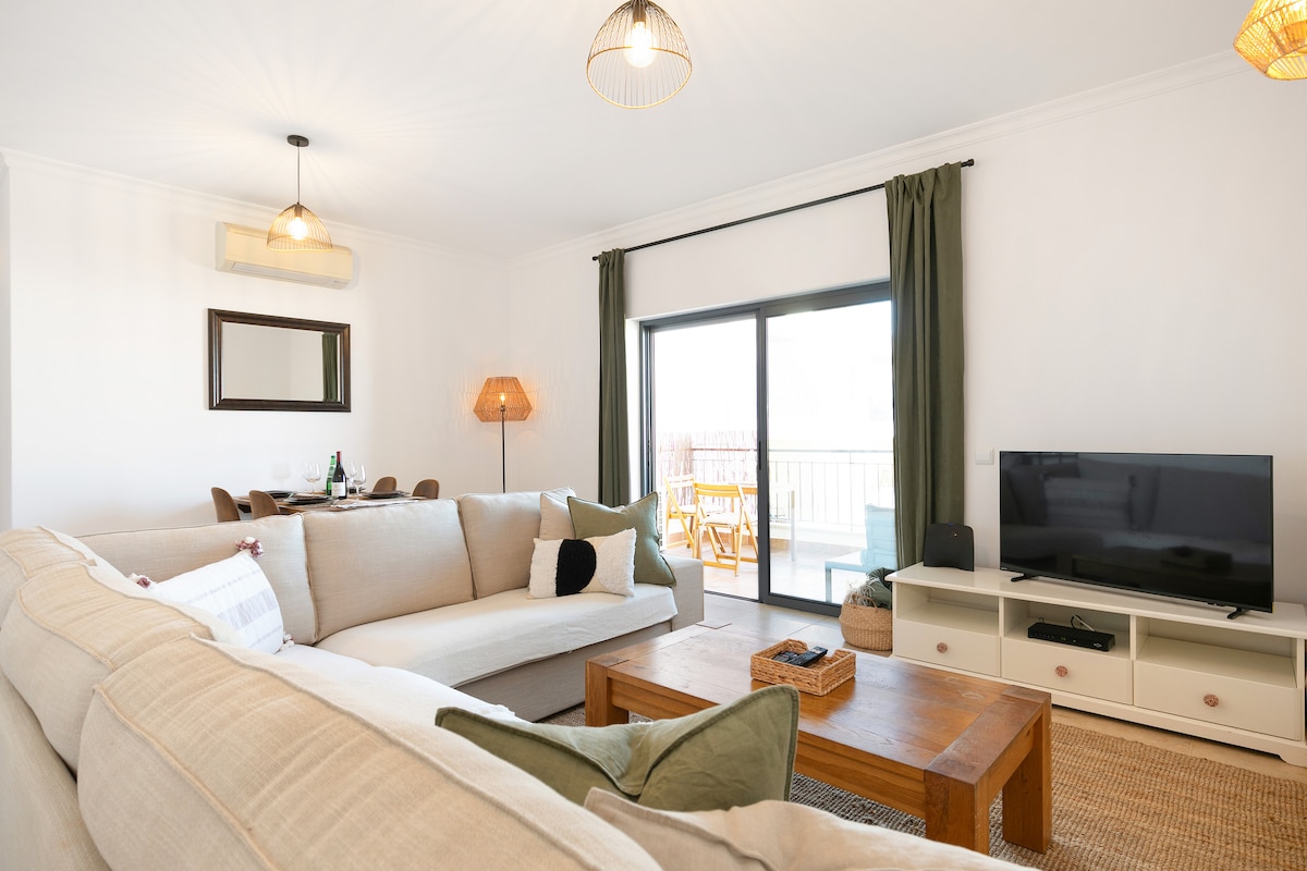 ¡Todo el encanto de nuestro dulce y cómodo apartamento de playa te espera en Lagos! A solo 2 minutos a pie de la hermosa playa de arena de Porto de Mos y a 5 minutos en coche de las playas de Dona Ana y Camilo. Recién reformado con una sala de estar abierta y balcón privado con dos hamacas. Después de un día lleno de diversión, prepara comidas artesanales en nuestra cocina totalmente equipada. ¡Un gran lugar para quitarse los zapatos después de explorar la costa del Algarve o simplemente relajarse en la playa!