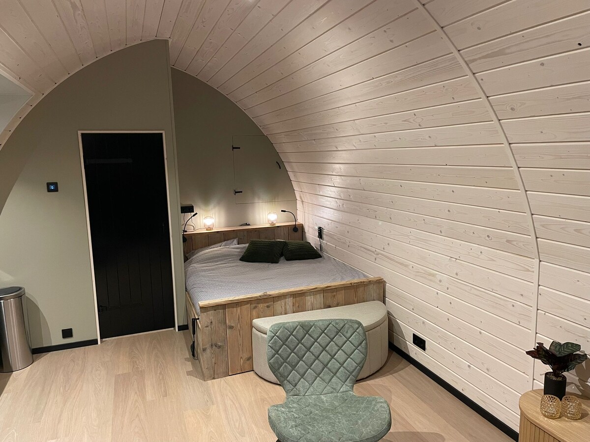 Kom onthaasten in ons nieuw gebouwde luxe en stijlvolle gastenverblijf met sauna, voor maximaal 4 personen, middenin de Friese Wouden. Geniet van het uitzicht over het mooie coulisselandschap. Dit is de perfecte locatie om je wandel- of fietstocht te starten. Het Bergumermeer is op slechts twee kilometer afstand, waar je bij het recreatiegebied Blauwhoek kunt genieten van een prachtig uitzicht over de wateren van Friesland. Veel privacy in een natuurrijke omgeving.