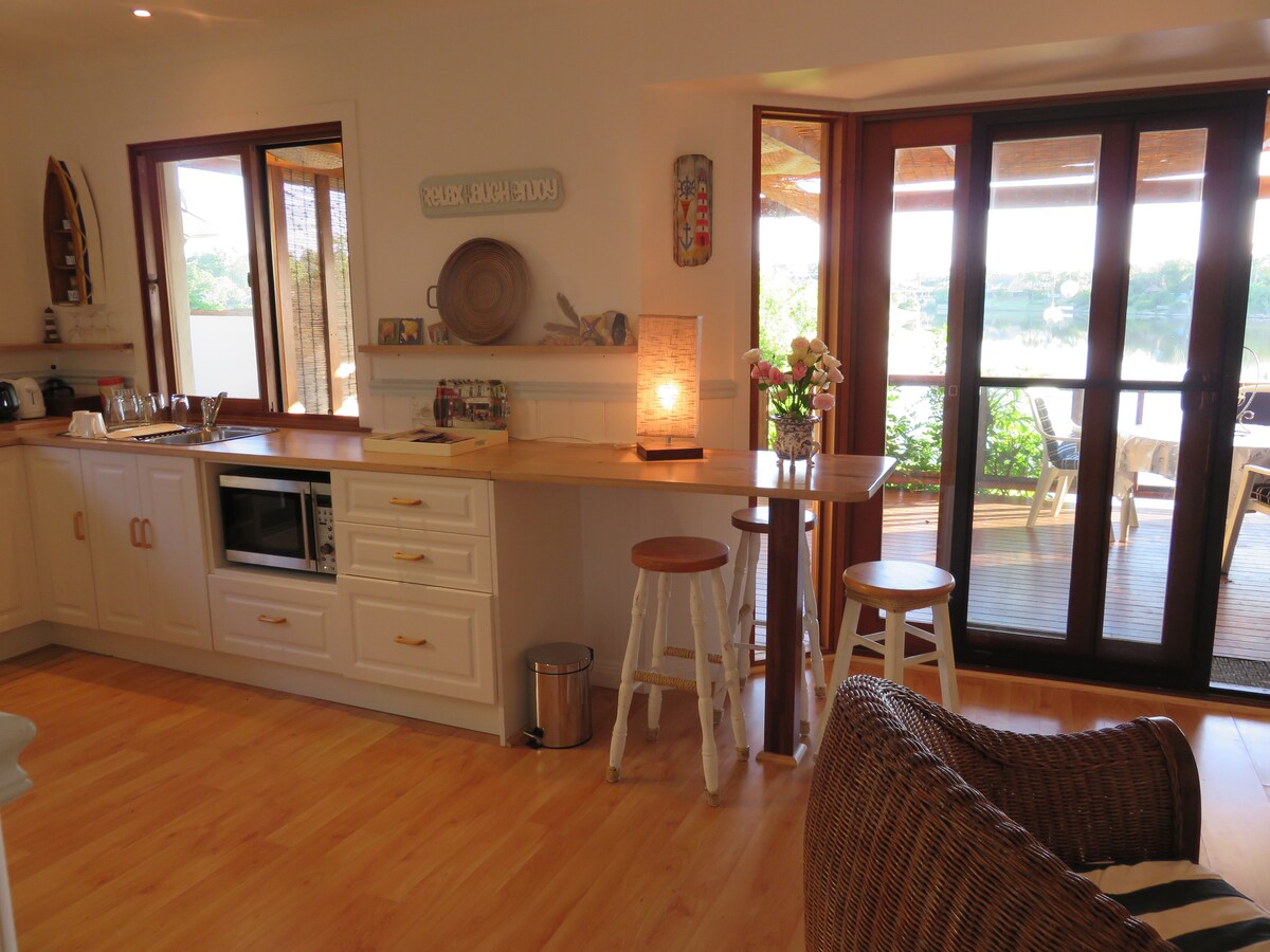 Nuevo apartamento totalmente independiente en el corazón de Burleigh Heads. Entrada privada desde la residencia principal. Está situado en el centro, pero lo suficientemente lejos de la emoción del pueblo de Burleigh Heads para disfrutar de un tiempo tranquilo después de un hermoso día en la famosa playa de Burleigh. El dormitorio está equipado con una gran televisión inteligente colgada en la pared, wifi gratuito, netfix, una cocina moderna y una cama tamaño queen. El gran centro comercial con supermercados está a solo 300 metros a pie de la puerta principal.