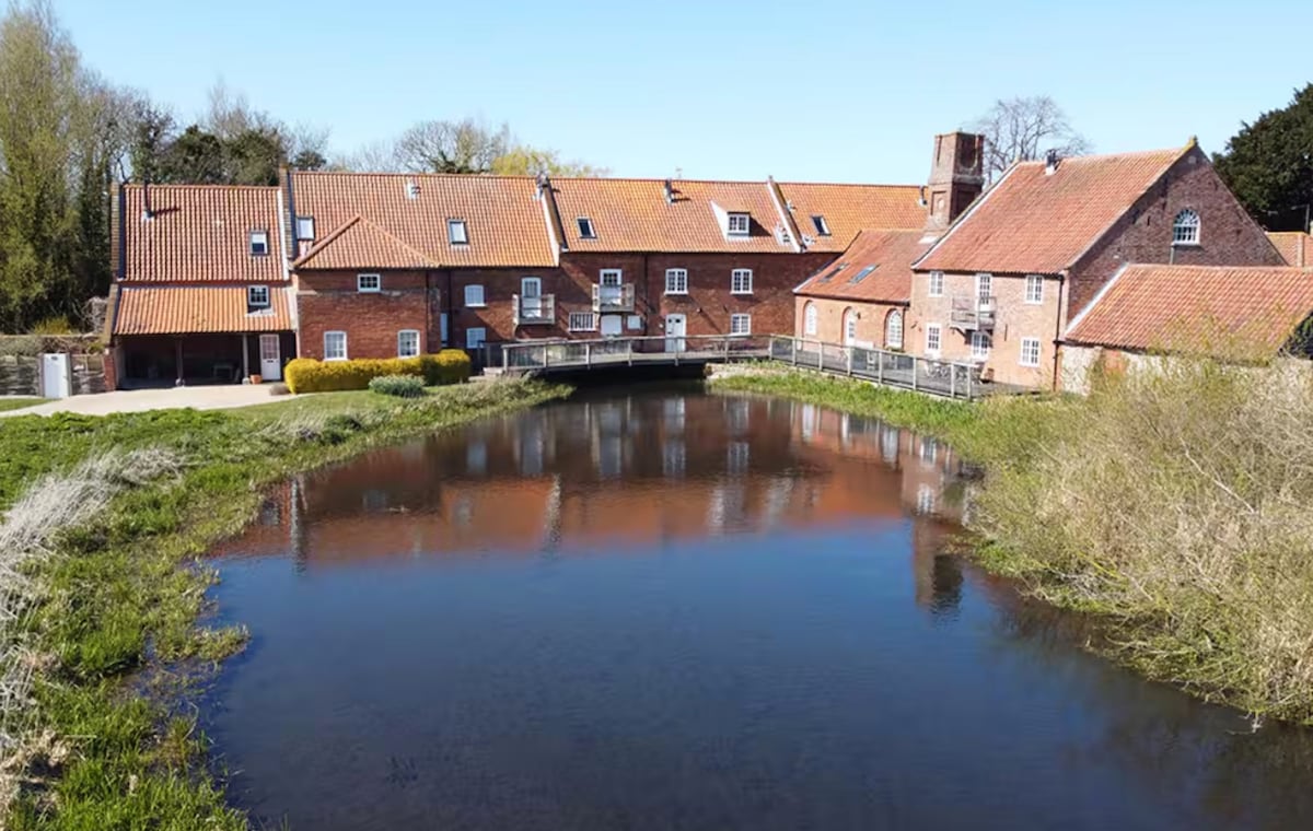 Hermosa casa de molino de agua de grado II en la costa norte de Norfolk, a solo 15 minutos a pie del moderno mercado Burnham y con maravillosos paseos a las dunas y al mar. La casa tiene una gran sala de estar espaciosa con una galería y una estufa de leña y una cocina bien equipada. Hay cuatro dormitorios dobles, dos con camas tamaño king, uno con literas de tamaño adulto y otro con camas individuales. La galería tiene un sofá cama. La terraza privada orientada al sur tiene vistas idílicas del estanque del molino y la increíble vida silvestre.