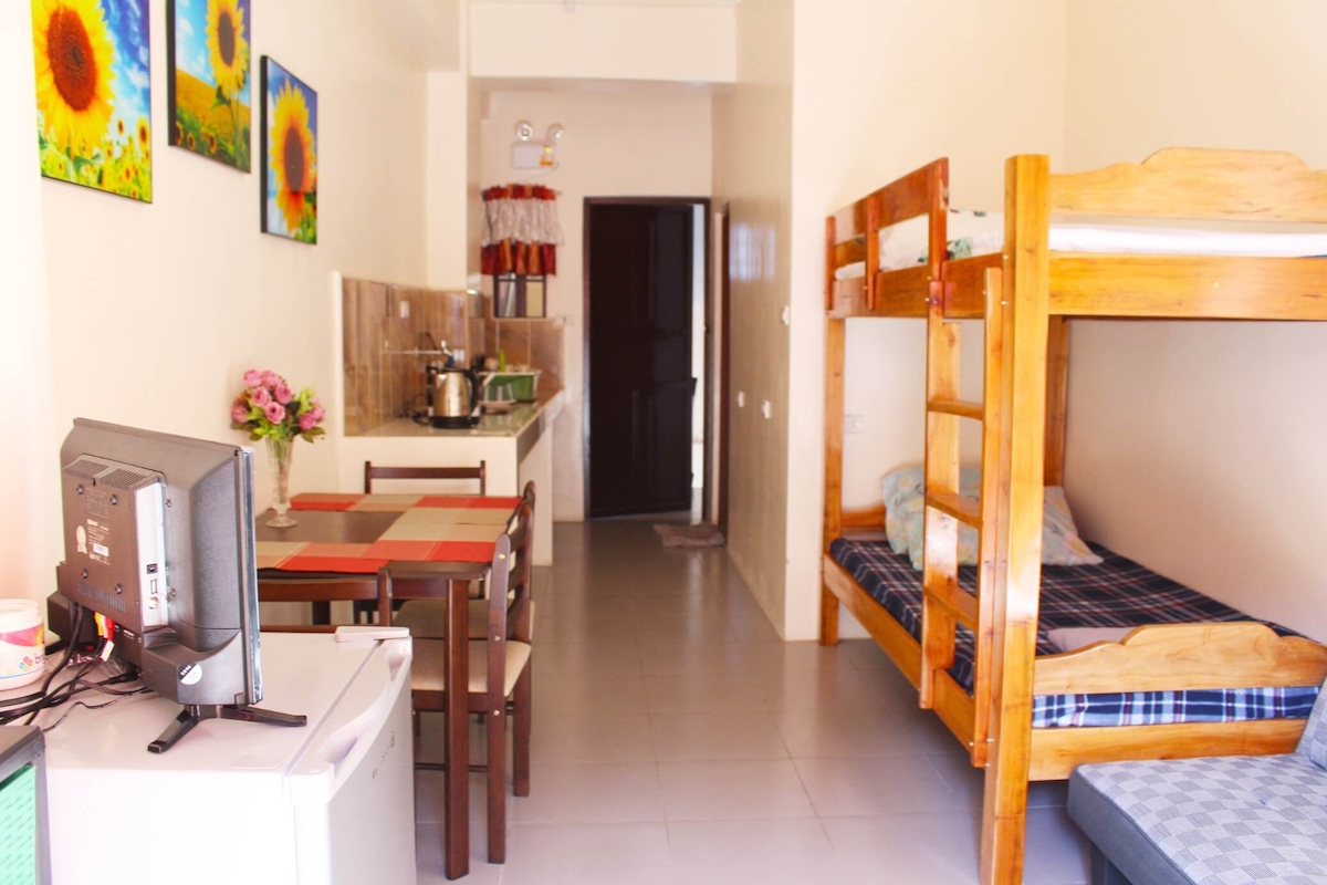 El apartamento forma parte de una casa más grande, pero tiene una entrada privada. Si quieres cocinar, hay electrodomésticos de cocina (ollas, sartenes, utensilios, cocina de inducción, etc.) También ofrecemos desayuno, a 150 por persona, sujeto a notificación previa. El apartamento puede alojar cómodamente a 6 huéspedes adultos. Cualquier huésped adicional debe tener aviso previo y consentimiento. Esto es para garantizar la comodidad y el disfrute de nuestros huéspedes. La propiedad incluye un invernadero, en el que puedes sentarte y disfrutar del aire frío de Baguio.