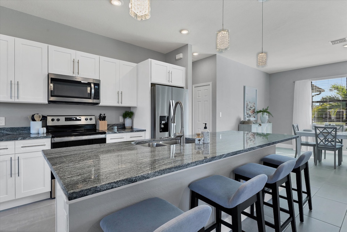 Disfruta de Cape Coral como nunca antes, todo desde esta hermosa villa de 3 dormitorios y 3 baños. Esta elegante villa cuenta con un vibrante interior decorado con muebles italianos y una cocina totalmente equipada. ¡Comienza el día con unos largos en la piscina privada antes de dirigirte a la playa pública del Yacht Club, al parque acuático familiar Sun Splash o a Pine Island para tomar el sol! Después de días de aventuras, continúa creando recuerdos en casa con una barbacoa familiar y un baño en el jacuzzi o disfruta de una noche de cine con tus seres queridos.
