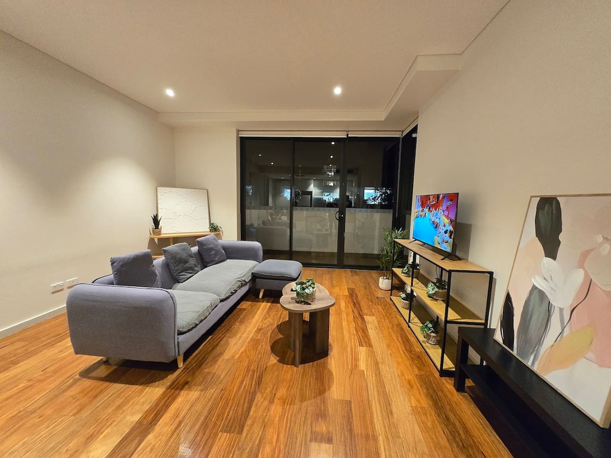 🌇 Elegante apartamento de 2 dormitorios en el centro de Burwood Disfruta de impresionantes vistas del horizonte desde este moderno apartamento de 2 dormitorios en Mary Street. A solo 2 minutos de la estación de Burwood y Westfield, con trenes directos al distrito financiero de Sídney en 12 minutos. Cuenta con sala de estar de planta abierta, cocina totalmente equipada, balcón privado, WiFi, aire acondicionado y acceso seguro al ascensor. Perfecto para parejas, familias o estancias de negocios.