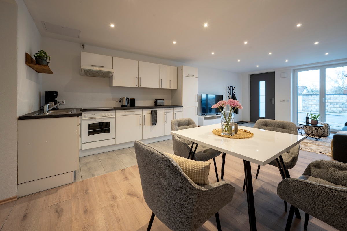 Willkommen in Ihrem exklusiven Rückzugsort in Buxheim/Memmingen! Dieses neu renovierte Apartment für bis zu 4 Personen und vereint Stil & Komfort. ✔ Wohnraum: Gemütliches Sofa & Smart-TV ✔ Küche: Voll ausgestattet mit Essbereich ✔ Schlafzimmer: Boxspringbett & Kleiderschrank ✔ Zusatzbetten: Schlafsofa für 2 Personen ✔ Badezimmer: Hochwertige Dusche, Handtücher & Waschtrockner ✔ Extras: WLAN, kostenfreier Parkplatz ✔Top Lage: Airport, Hauptbahnhof, Autobahnkreuz, Ausflüge im Allgäu