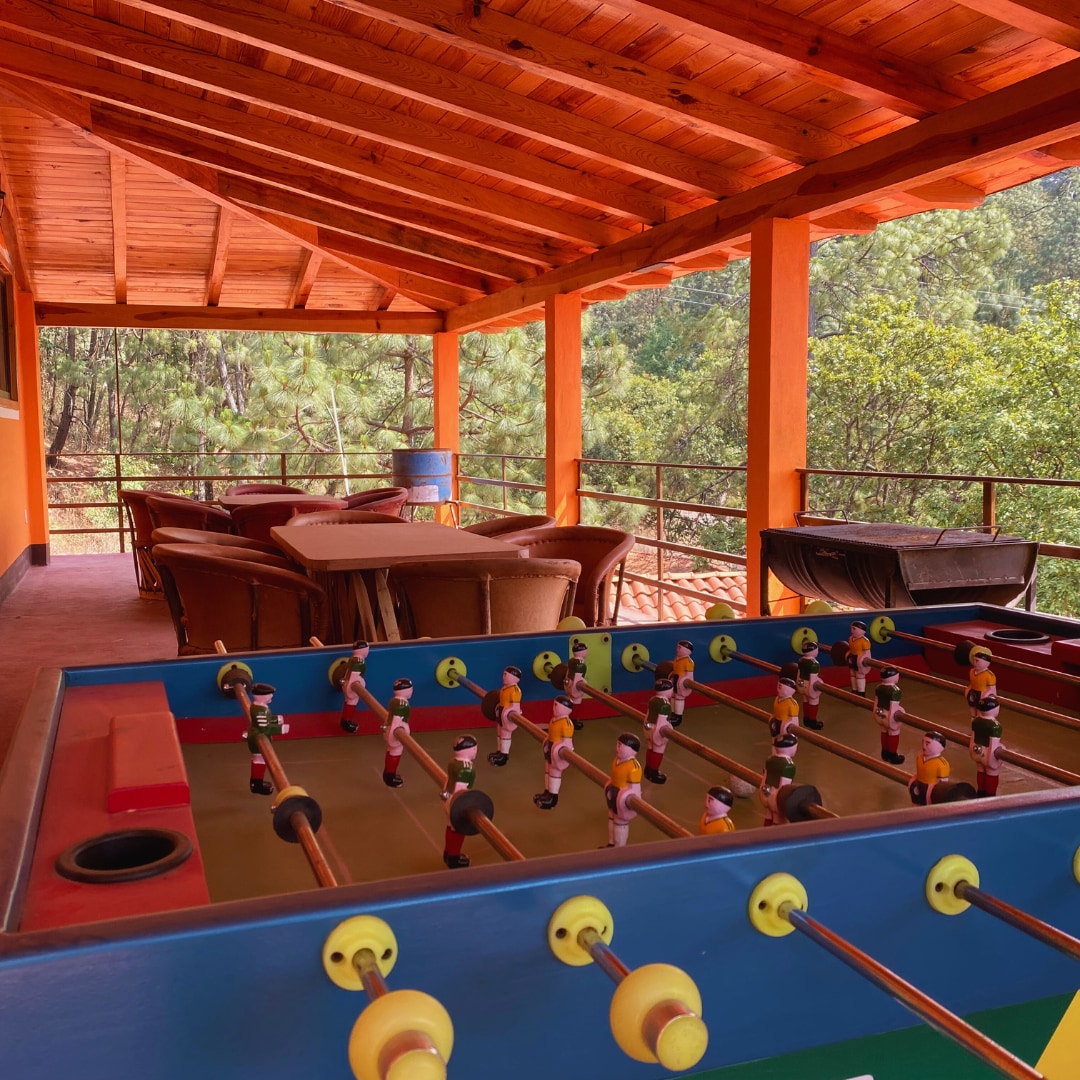 Disfruta de una cabaña en el bosque totalmente equipada para que tu experiencia sea inolvidable. Consigue un descanso de lujo en sus colchones de calidad, diviértete en su terraza con asador y estufa, ten una noche romántica en su terraza con chimenea. Deja que tus hijos corran y rían en la explanada jugando en la casita infantil y quemen bombones en su fogata. Ubicada dentro de la seguridad del fraccionamiento Los Cazos con acceso a La Cascada El Salto.