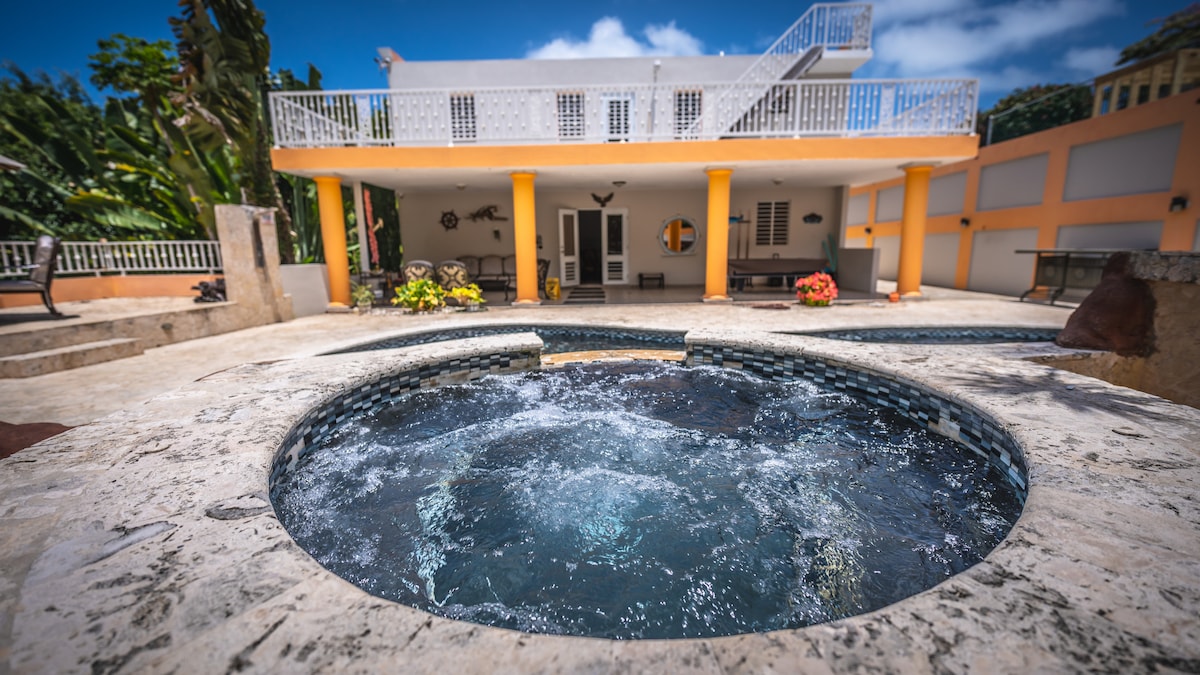 Bienvenidos a Oasis en la Roca, tu refugio moderno cerca de Las Croabas, Fajardo. Perfecto para parejas. Nuestro apartamento de un dormitorio ofrece comodidades como un jacuzzi, cocina equipada y un fireplace exterior. Sumérgete en la piscina iluminada con luces, chorritos y calentador para una experiencia aún más placentera bajo las estrellas. Además, estamos cerca de playas, negocios y centros turísticos. ¡Reserva ahora y descubre tu propio oasis en Fajardo! 🏝️✨