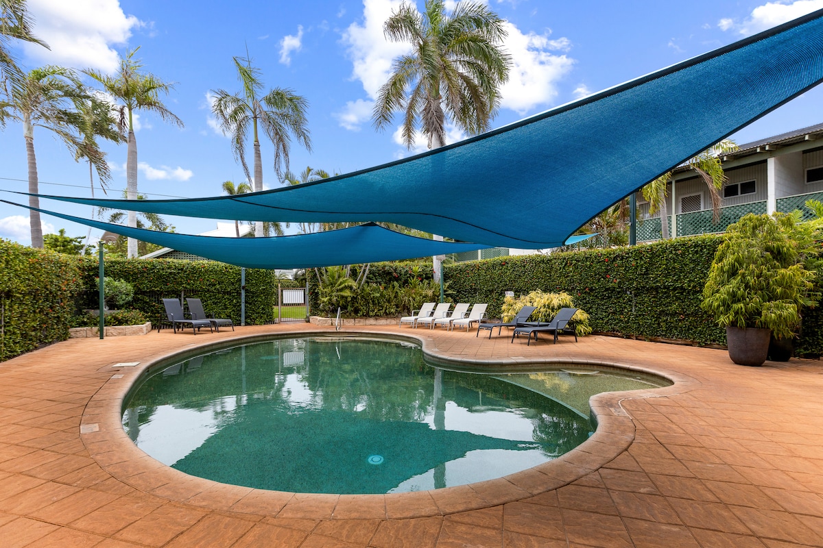 Los huéspedes tienen acceso a nuestra casa de huéspedes independiente de dos dormitorios con vistas al jardín y al área de la piscina. La casa de huéspedes tiene su propia cocina pequeña, lavadora y baño privado. Cada dormitorio tiene una cama tamaño queen con aire acondicionado, armario empotrado y TV. Los huéspedes tienen acceso a la piscina y a una gran terraza al aire libre con barbacoa, salón y TV. Al estar a solo un paseo de la increíble Cable Beach y de encantadoras cafeterías y restaurantes, ¡este lugar no decepcionará! Número de registro: STRA6726Hqws7q4w