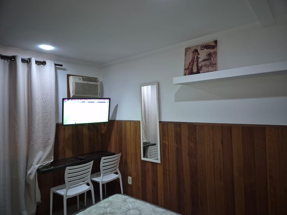 Disfruta de días increíbles en Cabo Frio alojándote en nuestro amplio y cómodo loft, en el encantador barrio de Passage, a pocos metros de Praia do Forte y del borde gastronómico de la ciudad. Tiene capacidad para 5 personas y es perfecto para familias o grupos pequeños que desean combinar ubicación, comodidad y economía. • ❄️ Aire acondicionado • Piscina🏊 común • 🚗 Aparcamiento • 📺 Smart TV y wifi • 🧊 Minibar • Cerradura🔒 digital • 🛏️ 1 cama doble + 1 sofá cama, ropa de cama y toallas