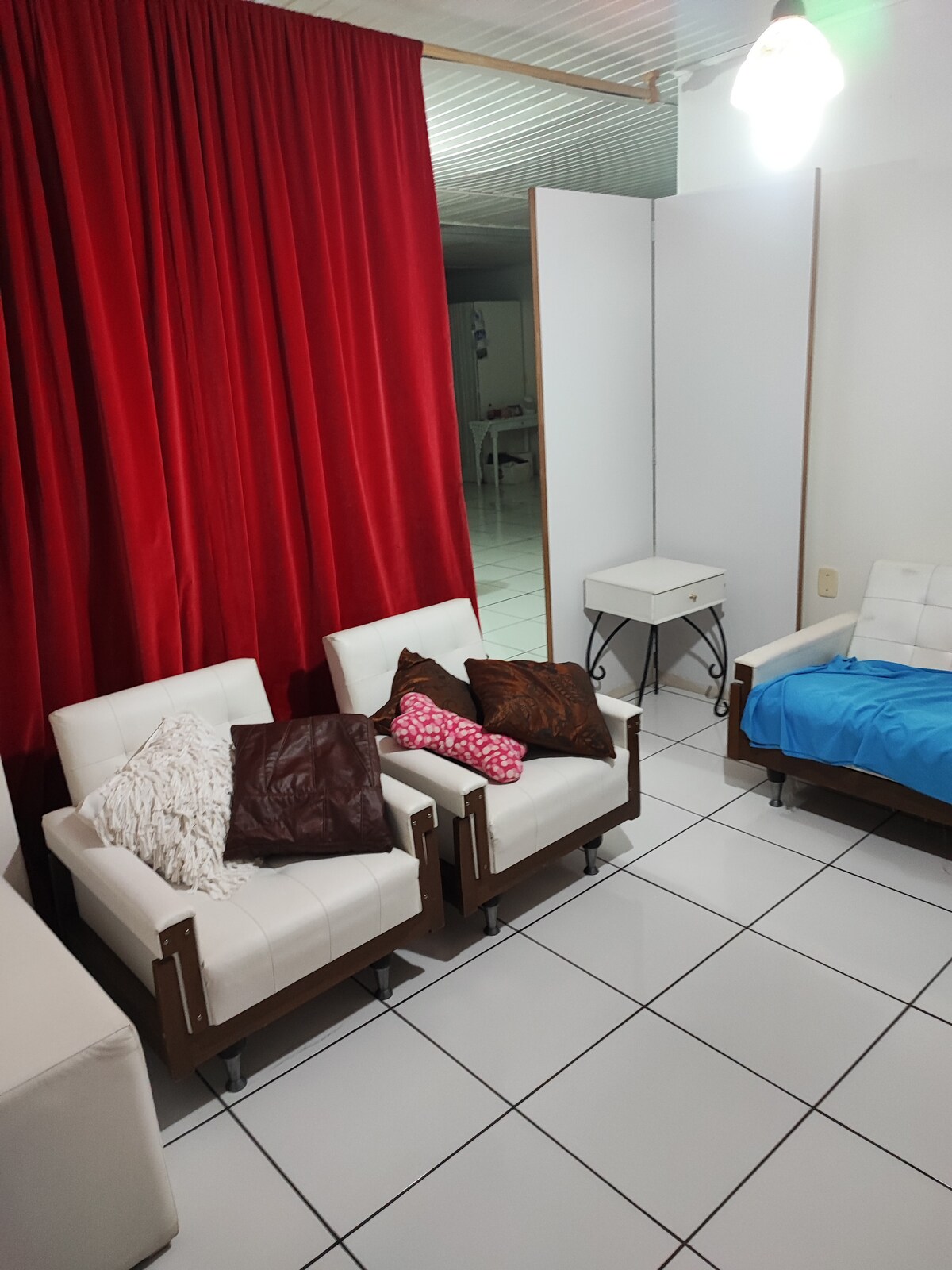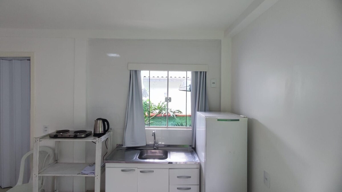 Relaxe neste espaço calmo e cheio de estilo. Apto oferece 2 🛏 cama de solteiro + 🛋 sofá-cama; as camas de solteiro podemos montar de casal. 🍽 cozinha equipada (geladeira, micro-ondas, fogão 5 boca, airfryer, sanduicheira, chaleira elétrica); varal de roupas; 🚿 Banheiro com secador; 🌐 internet fibra óptica; 🚗 pátio fechado com câmeras de segurança. Localização privilegiada, 950 metros universidade, 200 metros 🛒 mercados, 🍽 restaurantes, farmácias
