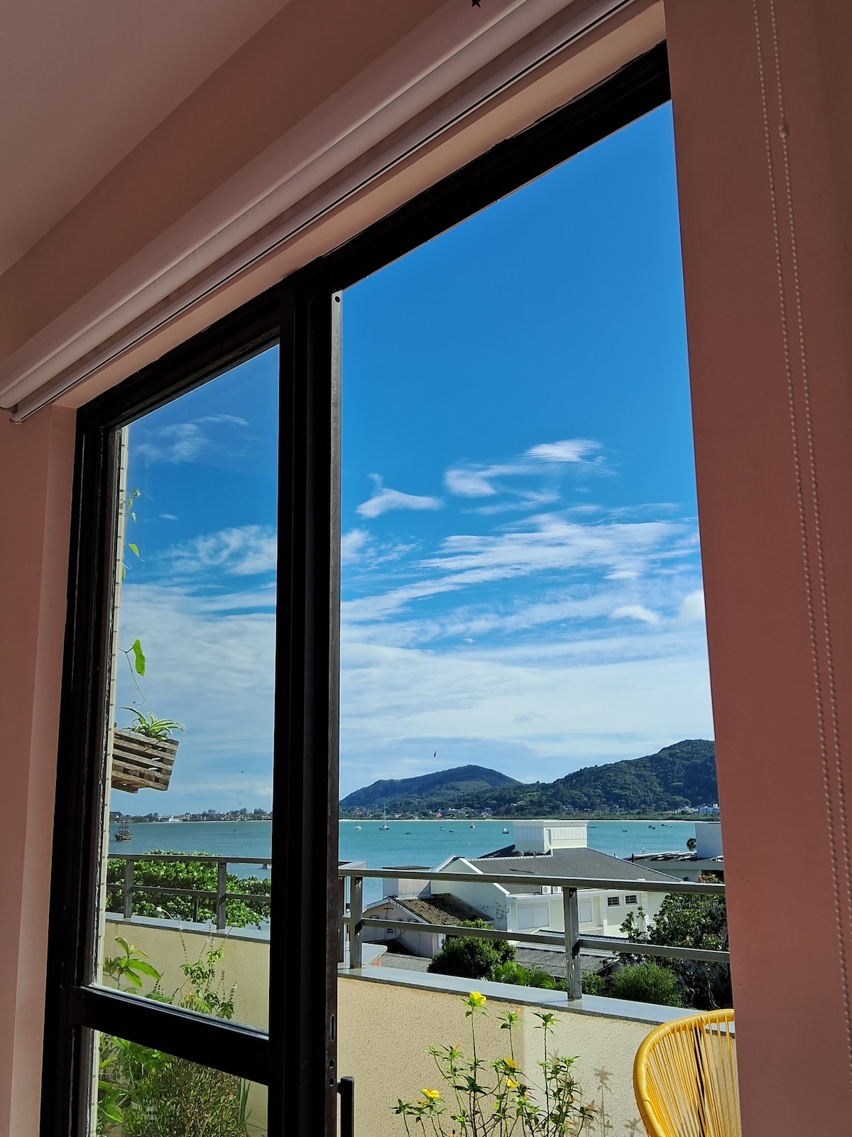 Apartamento com vista para o mar, está localizado num terreno a em frente à Praia da Cachoeira do Bom Jesus. Fica na melhor localização do bairro a poucos metros de mercado, farmácias, restaurantes. Os hóspedes poderão ter acesso parte frontal do quintal que tem um portão para a praia com chuveiro de água doce. No mesmo terreno existem outras três propriedades, totalmente independentes. O local tem ambiente familiar. Relaxe neste lugar único e tranquilo.
