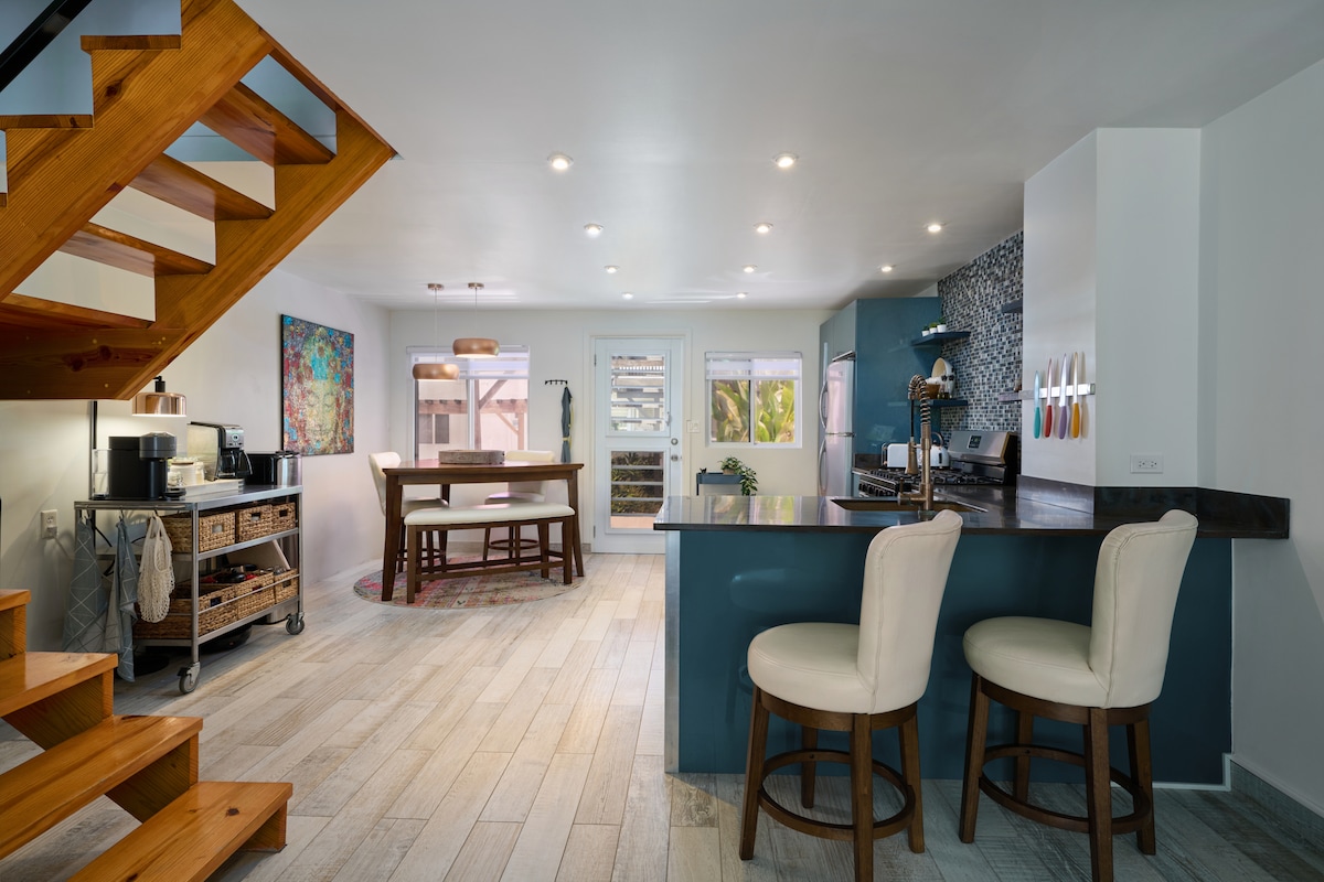 Casa adosada con 2 dormitorios, 2,5 baños, 1200 pies cuadrados (111 metros cuadrados). Terraza privada frente al agua y 2 balcones con vistas al atardecer occidental. Cocina totalmente abastecida y equipada. Aparcamiento privado en el lugar para coches más pequeños; aparcamiento para vehículos más grandes a pocos pasos. Comunidad cerrada con restaurantes, bares y cafeterías, campo de golf, puerto deportivo, supermercado, bancos y agencias de alquiler de coches. A 10 minutos a pie de North Beach y del campo de golf, a 20 minutos a pie de restaurantes, tiendas y otros servicios.