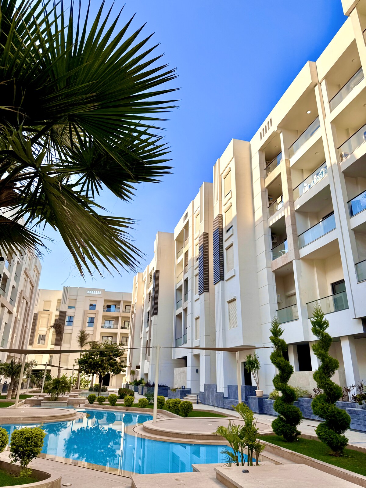 Apartamento de lujo de 3 dormitorios con piscina en Waterway New Cairo