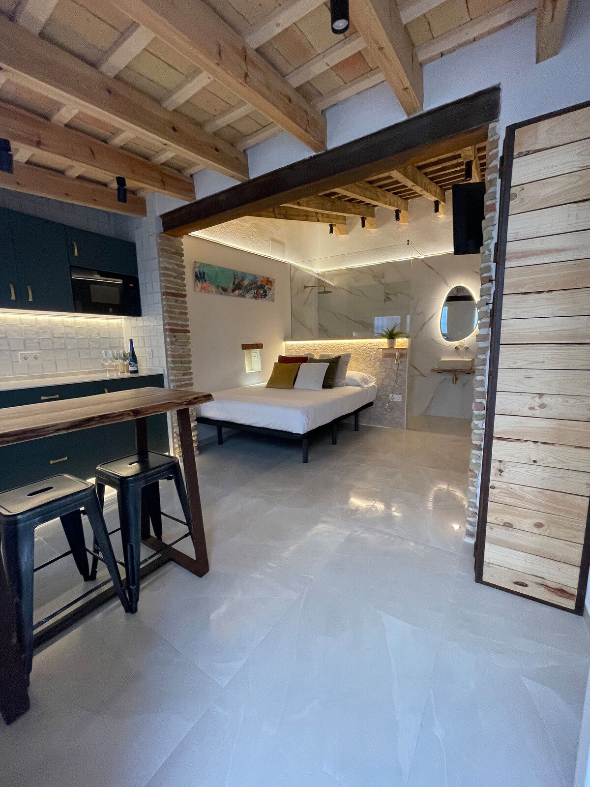 Disfruta de una experiencia de lujo en este céntrico alojamiento. Estudio tipo loft a estrenar, totalmente reformado, totalmente amueblado y con calidades de gama alta. Aire acondicionado, wifi, TV Digital. Cocina totalmente equipada. Cama QUEEN SIZE. Ideal para parejas. Máx 2 personas. A 250m de la playa a pie. La vivienda se encuentra en el centro histórico de Conil, dentro de un patio de vecinos, zona muy tranquila. A un par de minutos de zona de bares y restaurantes para comer/cenar.