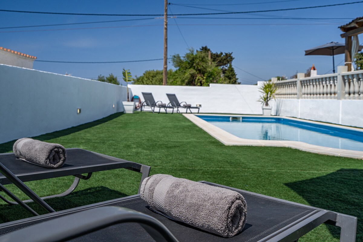 Disfruta de esta preciosa villa de 180 m2 totalmente reformada con una muy buena ubicación cerca de la playa y de zonas de ocio ,una piscina privada recien estrenada,una terraza espectacular donde relajarse y disfrutar de unas comidas y cenas al aire libre, que consta de 4 dormitorios y 3 baños,aire acondicionado en todas las habitaciones,barbacoa ,billar,ping pong,y preciosas hamacas para tomar el sol. si quieres verlo por dentro entra en https://youtu.be/VK-dcvHQkto