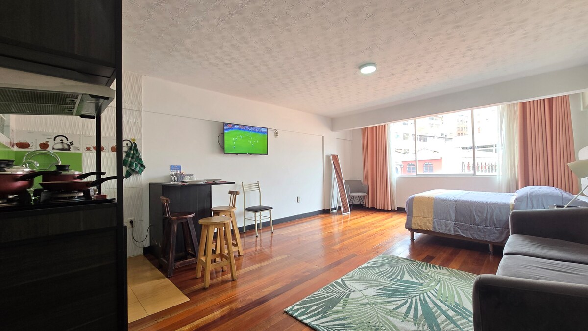 una habitación muy céntrica, cerca de restaurantes, pubs, cafeterías, áreas turísticos como la calle de la brujas y/o paraguitas, tambien la plaza principal de la ciudad esta a 10 minutos palacio de gobierno entre otros. la habitación es bastante cómoda y bien equipada con lo necesario y de fácil acceso.
