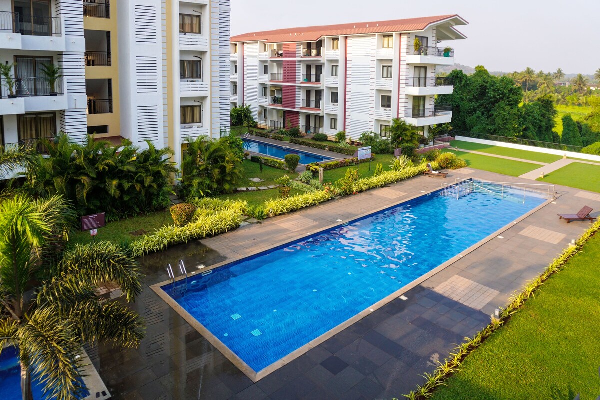 Escápate a nuestro apartamento de lujo premium 1BHK en Baga, al norte de Goa, un paraíso para parejas y familias pequeñas. A solo 1 km de la playa de Baga, enclavada en una tranquila sociedad cerrada en el corazón de Baga. Disfruta de dos piscinas grandes, jacuzzi, vapor, sauna, gimnasio grande, juegos interiores, área de yoga, estacionamiento cubierto y vistas serenas verdes. Sumérgete en las vistas de la piscina con exuberantes arrozales como telón de fondo. Experimenta el lujo y el ocio cuidadosamente diseñados, a solo 5 minutos a pie del emblemático Titos Lane.