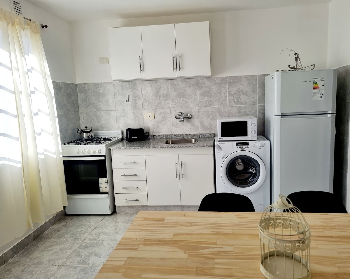 Tomate un descanso y relajate en este oasis tranquilo. Departamento para 2 personas, 1 cama matrimonial 1 sillón cama de un cuerpo, totalmente equipado electrodomésticos y utensilios de cocina