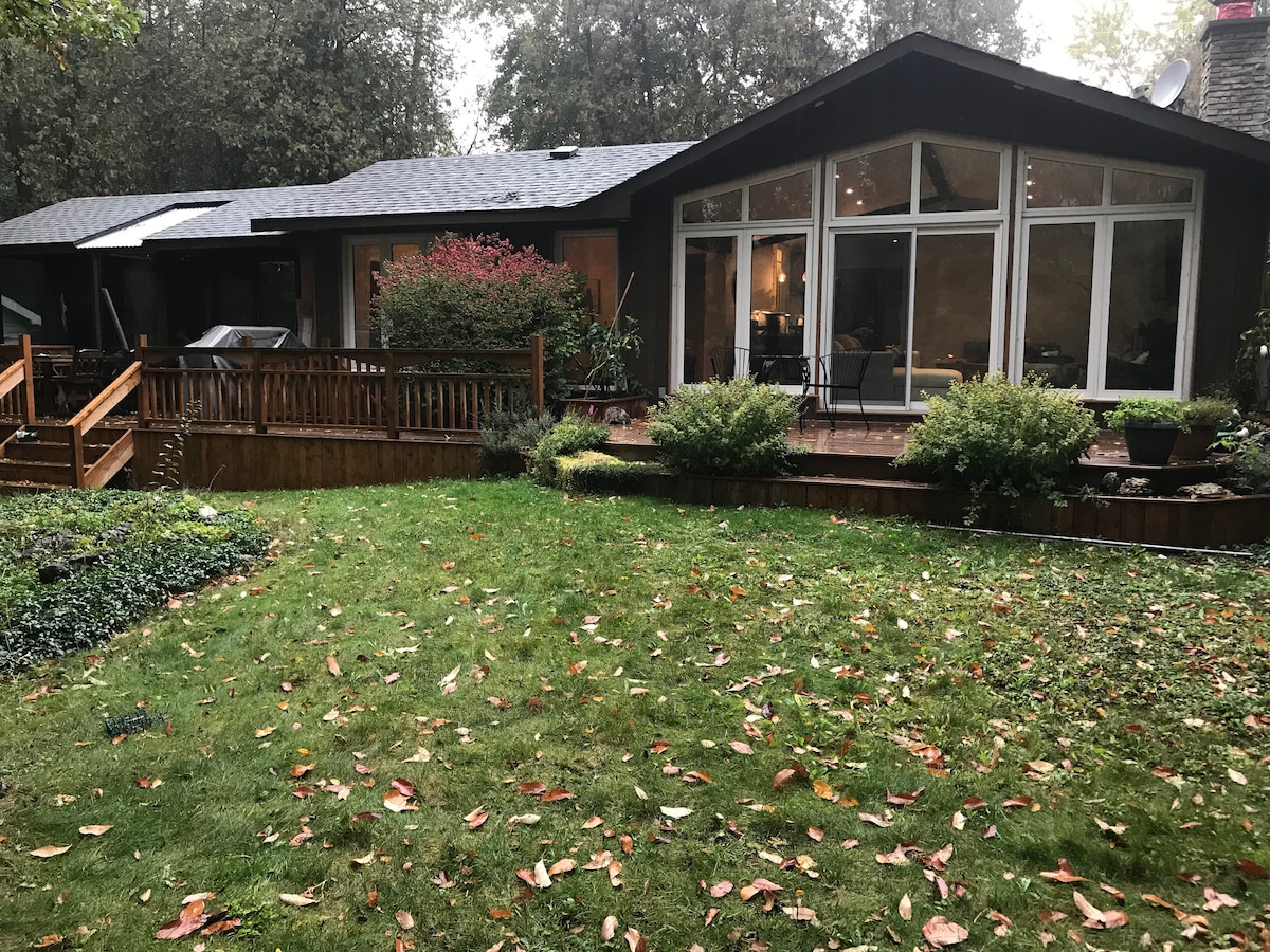 Welcome to Speed Island Trail! Nestled on 1 Acre property in a forested area that backs onto the Speed River. Enjoy Beautiful views all season long with large floor to ceiling windows and wildlife right outside your door. It is just like being out at the cottage. This beautiful one bedroom house is beautifully decorated, has a large kitchen and a breakfast bar. Enjoy the large sunroom and deck where you can sit back and relax. Added bonus the Chickadees eat right off your hand!