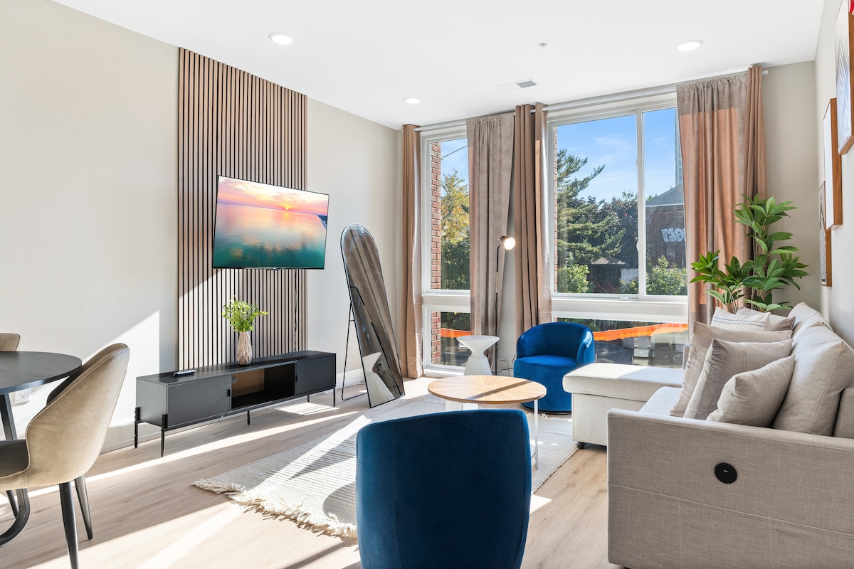 Escápate a nuestro elegante refugio de 2 dormitorios en Filadelfia, cerca de Fishtown y Old City. Este moderno apartamento tiene capacidad para alojar cómodamente a los huéspedes con camas tamaño queen, completas y sofás cama. Disfruta de una cocina totalmente equipada, wifi rápido y un parque para perros. Lo más destacado es el impresionante salón en la azotea con vistas panorámicas a la ciudad y al río Delaware. ¡Perfecto para el trabajo remoto o una aventura en la ciudad!