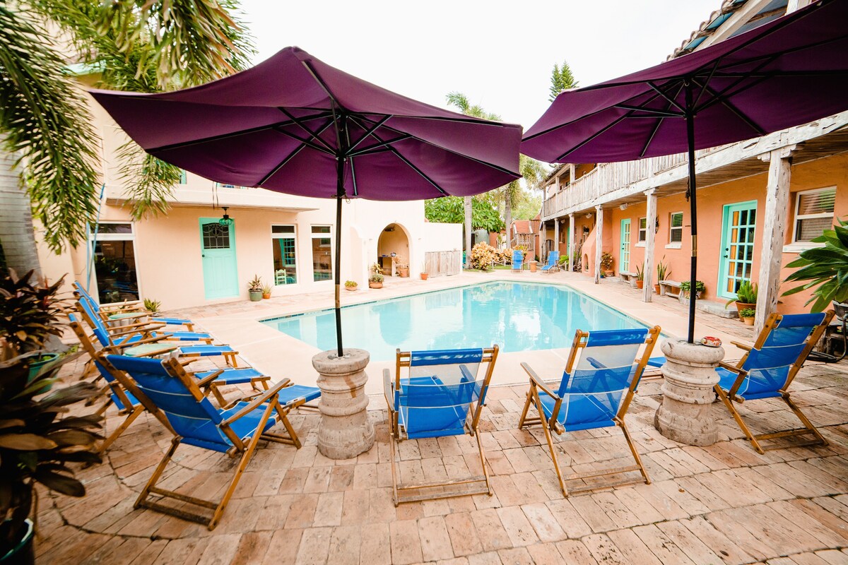 Bienvenido a Saltillo #3. ¡Un estudio luminoso y económico en el histórico Port Isabel, a pocos minutos de South Padre Island! Este colorido estudio en la planta baja ofrece 2 camas de tamaño completo y puede alojar cómodamente hasta 4 personas. Con fácil acceso a la piscina, el patio y la cocina al aire libre, Saltillo #3 es uno de los favoritos para viajes de chicas, fines de semana de pesca, escapadas en solitario y cualquier persona que busque una escapada asequible a la costa del Golfo cerca de SPI.