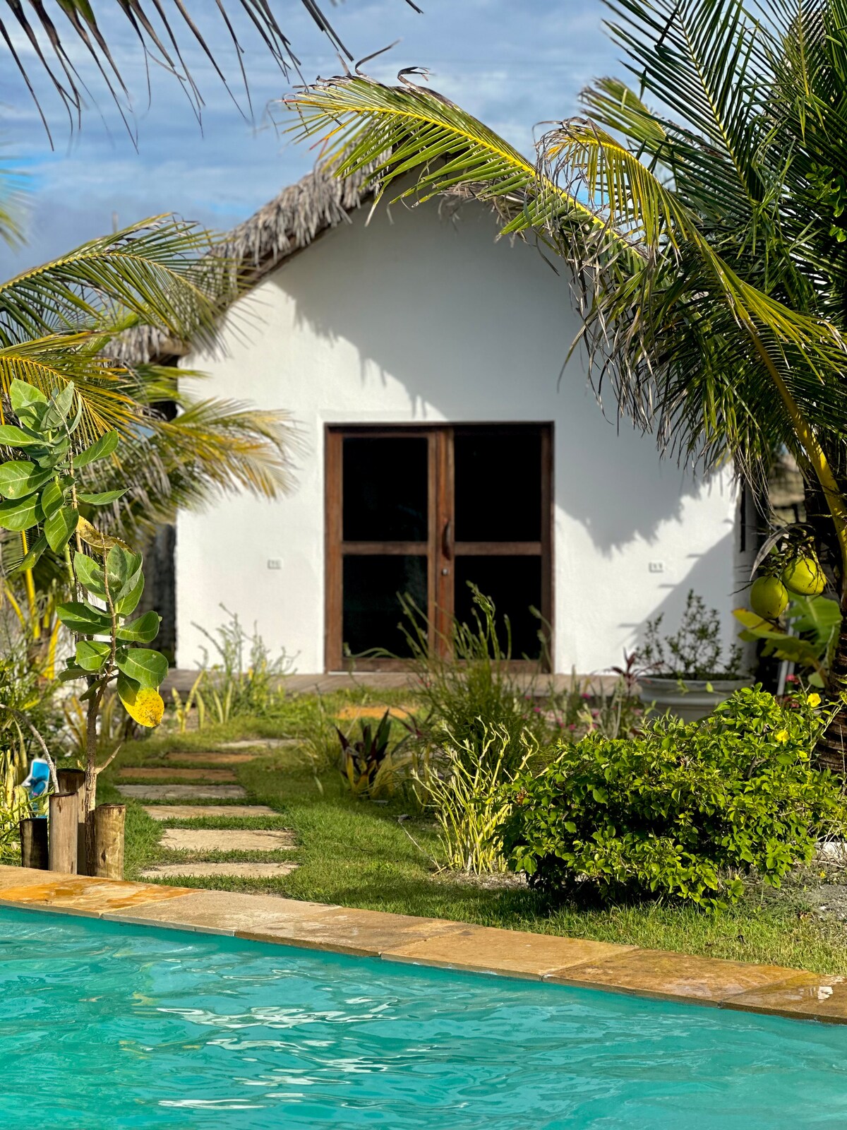 Relájate con toda la familia en este alojamiento tranquilo. Disfruta de una gran zona al aire libre, césped, piscina, ideal para niños y mascotas, así como de la terraza de barbacoa, parrilla, pinchos, una cocina con refrigerador, fogao, microondas, licuadora, sandwichera, ollas, platos, cubiertos, xicaras y vasos, y la comodidad de 3 suites con aire acondicionado para un sueño reparador. Despierta con el viento en la paja de los cocoteros o observa las estrellas después del anochecer y escucha la paz de este lugar.
