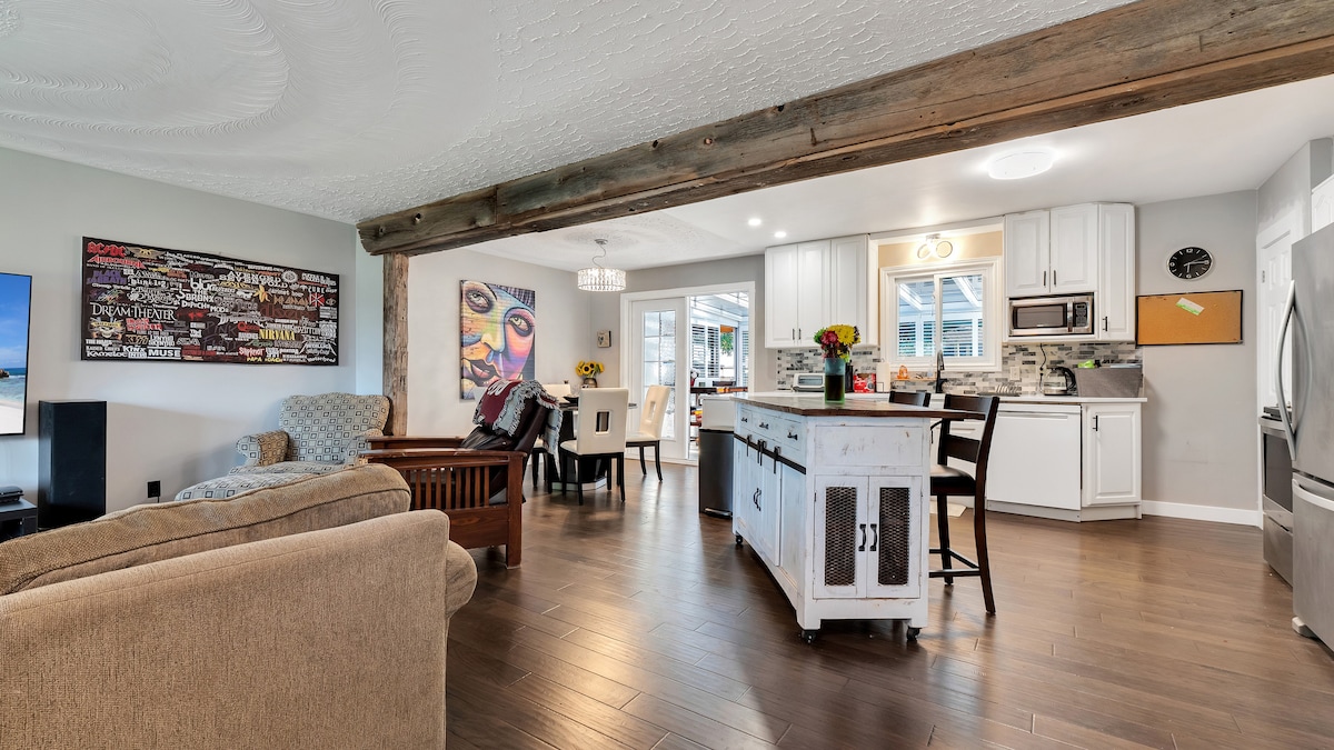 Escapa del caos diario y relájate en esta romántica casa con estructura de madera. Ubicada en 36 acres de bosque y pantano, esta encantadora escapada cumplirá el deseo de cualquier pareja de un fin de semana privado en el bosque para disfrutar de una profunda conexión entre sí y con la naturaleza. Los techos altos del loft, las vigas a la vista, la chimenea de leña, un acogedor dormitorio tipo loft, una espaciosa ducha para dos y una bañera profunda crean un ambiente íntimo y agradable para tu retiro sin preocupaciones. Alberga una gran cantidad de vida silvestre.