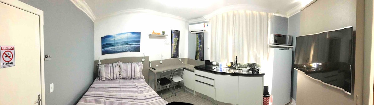 ¿Buscas un punto de control acogedor en el corazón de la ciudad? Te sentirás como en casa en este loft bien planificado. Ubicado en el centro de Florianópolis, es perfecto para alguien que busca explorar la isla o asistir a un evento cercano. Incluye: - Cama tamaño queen. - Cocina gourmet completa. - Lavadora y secadora. - Mesa grande para comidas y oficina en casa. - TV giratoria 360 para que puedas verla desde cualquier lugar del loft. - Baño limpio y moderno. - Wifi. - Aire acondicionado completo.