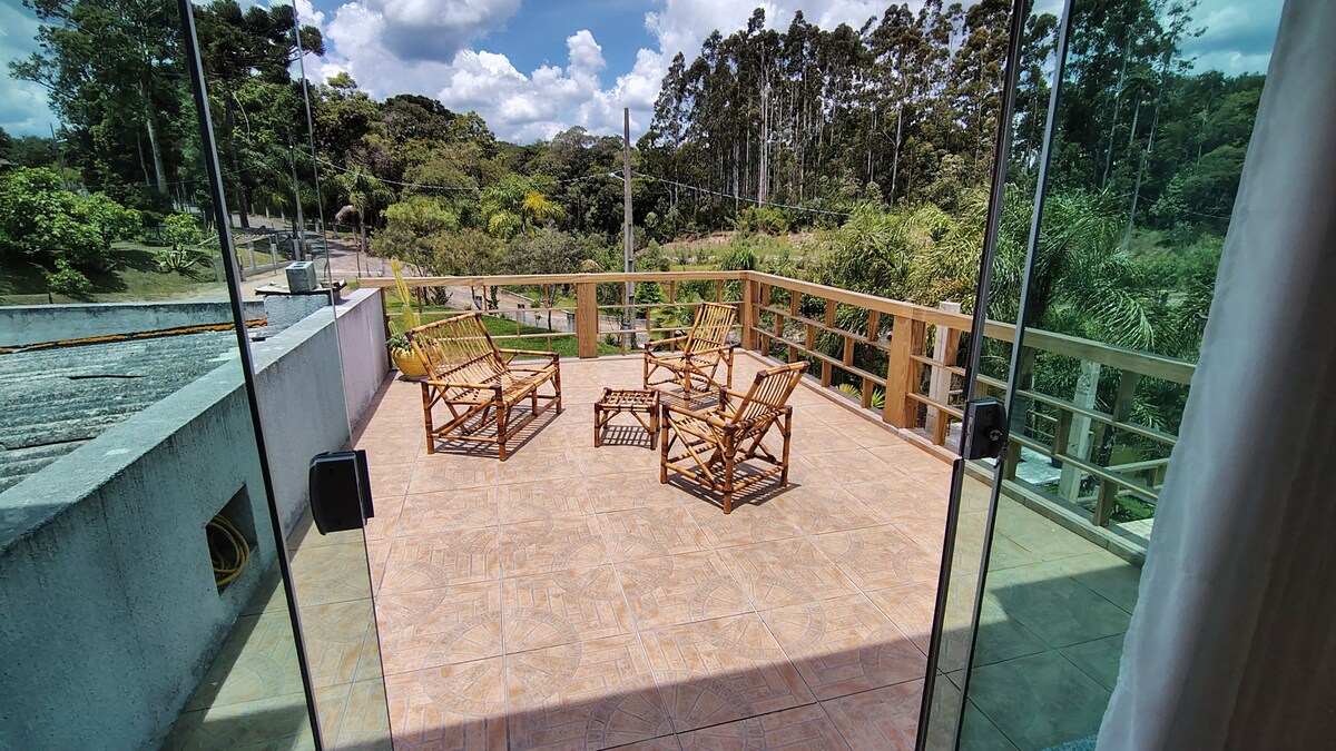 Casa súper acogedora, con chimenea ecológica, parrilla y estufa de leña. Fogón en el exterior con banco para disfrutar y charlar al aire libre, mesa de comedor con seis asientos, balcón exterior alrededor de toda la casa con bancos para disfrutar de la vista con tranquilidad. Lago lleno de carpas, con mucho espacio para toda la familia. Internet de fibra óptica de 300 MB. Mucha privacidad y comodidad a solo 15 minutos del centro de Campo Alegre y a menos de 10 minutos de Rampa do Bugio.