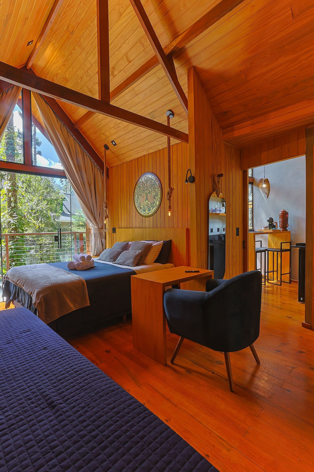 A Cabana Beija Flor é um refúgio intimista em Campos do Jordão, perfeita para casais que desejam privacidade, silêncio e contato com a natureza. A Cabana oferece uma atmosfera acolhedora e romântica, com banheira de hidromassagem ideal para relaxar e aproveitar o clima da serra. O espaço conta com automação pela Alexa, permitindo ajustar luzes e música para criar o clima ideal. Um refúgio exclusivo para desacelerar e apreciar o tempo a dois.