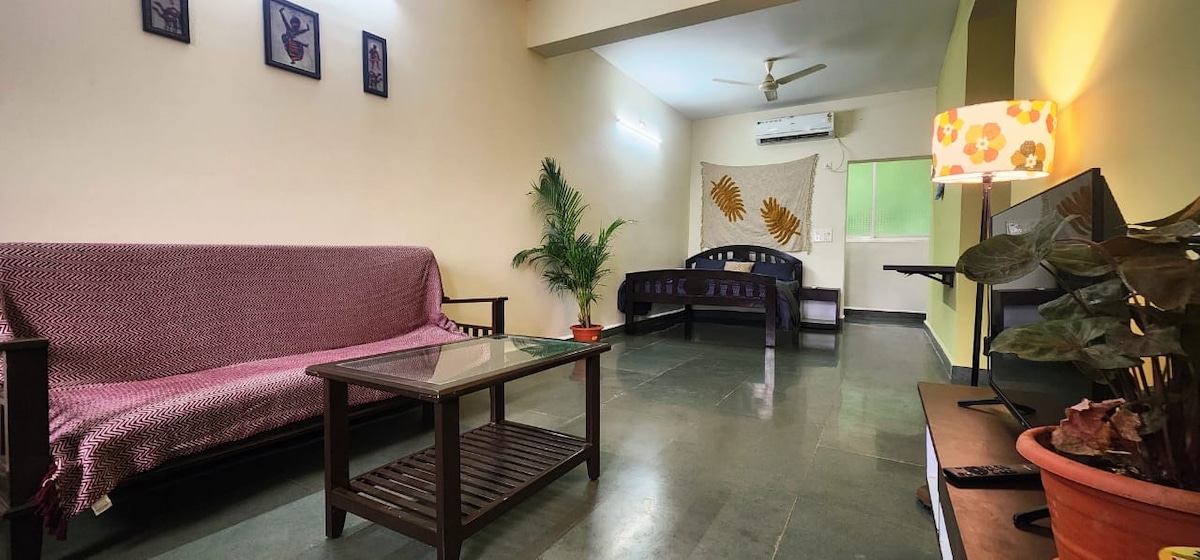 Puedes enviarme un mensaje haciendo clic en la opción «Contactar con el anfitrión» con un «Hola» para que sepa que estás viendo mi anuncio. Podemos chatear desde allí. Ubicado en Benaulim, este es un espacioso apartamento de 2 dormitorios. Cada dormitorio tiene una cómoda cama con aire acondicionado. Puedes cocinar en este apartamento. Hay 2 baños con agua corriente fría o caliente. La playa está a 2-5 minutos a pie de aquí.