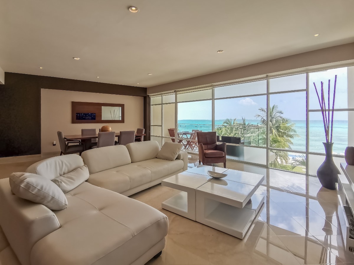 Desde el momento en que entres en la propiedad te darás cuenta de por qué has venido a Cancún: la playa de arena blanca y suave y las aguas turquesas más hermosas. Porque eso es todo lo que puedes ver desde las vistas panorámicas de 180° que ofrece el apartamento. No se escatimó ningún detalle. Más de 2 años remodelando esta propiedad única. A solo 150 metros de toda la vida nocturna, 2 piscinas grandes, un restaurante y un club de playa en el edificio. Una fusión de muebles de madera exótica y mármol importado hacen que este lugar sea inigualable en Cancún.